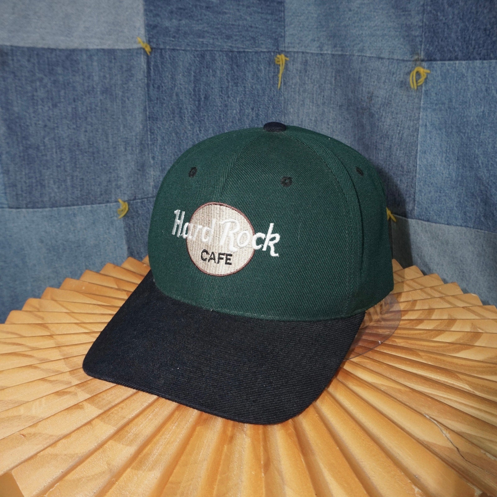 OSFA - Vintage / Y2K Hard Rock Cafe embroidered logo two tone forest green/black color away essential 1990s/2000’s era