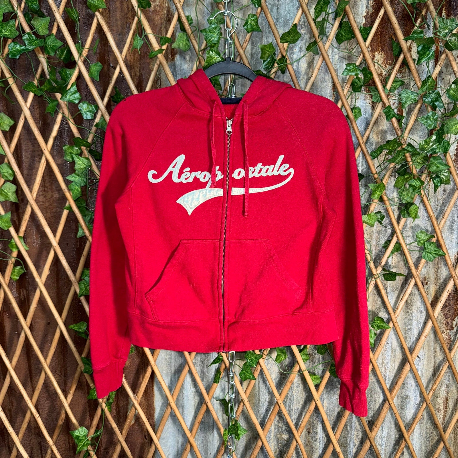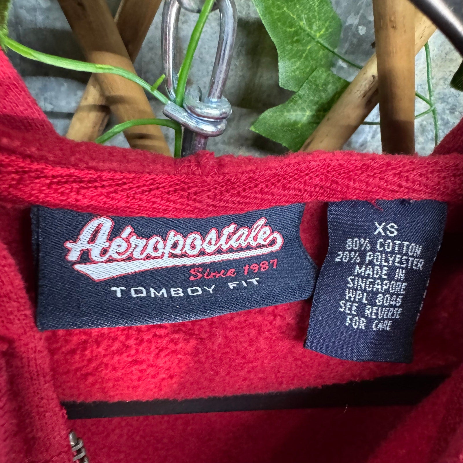 Vintage / Y2K Aeropostale zip up hooded sweatshirt femme/women’s hoodie fell out across chest collegiate prep style with tail tomboy fit 2000’s era