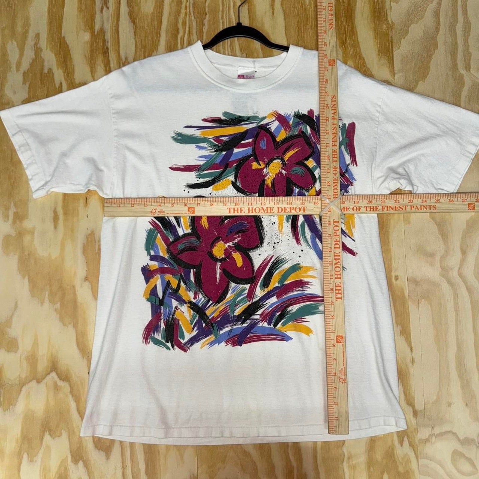 Vintage / Y2K Hand painted style flowers, beautiful pretty cute white T-shirt on hanes Her Way, Tag all over print, jumbo big, graphic