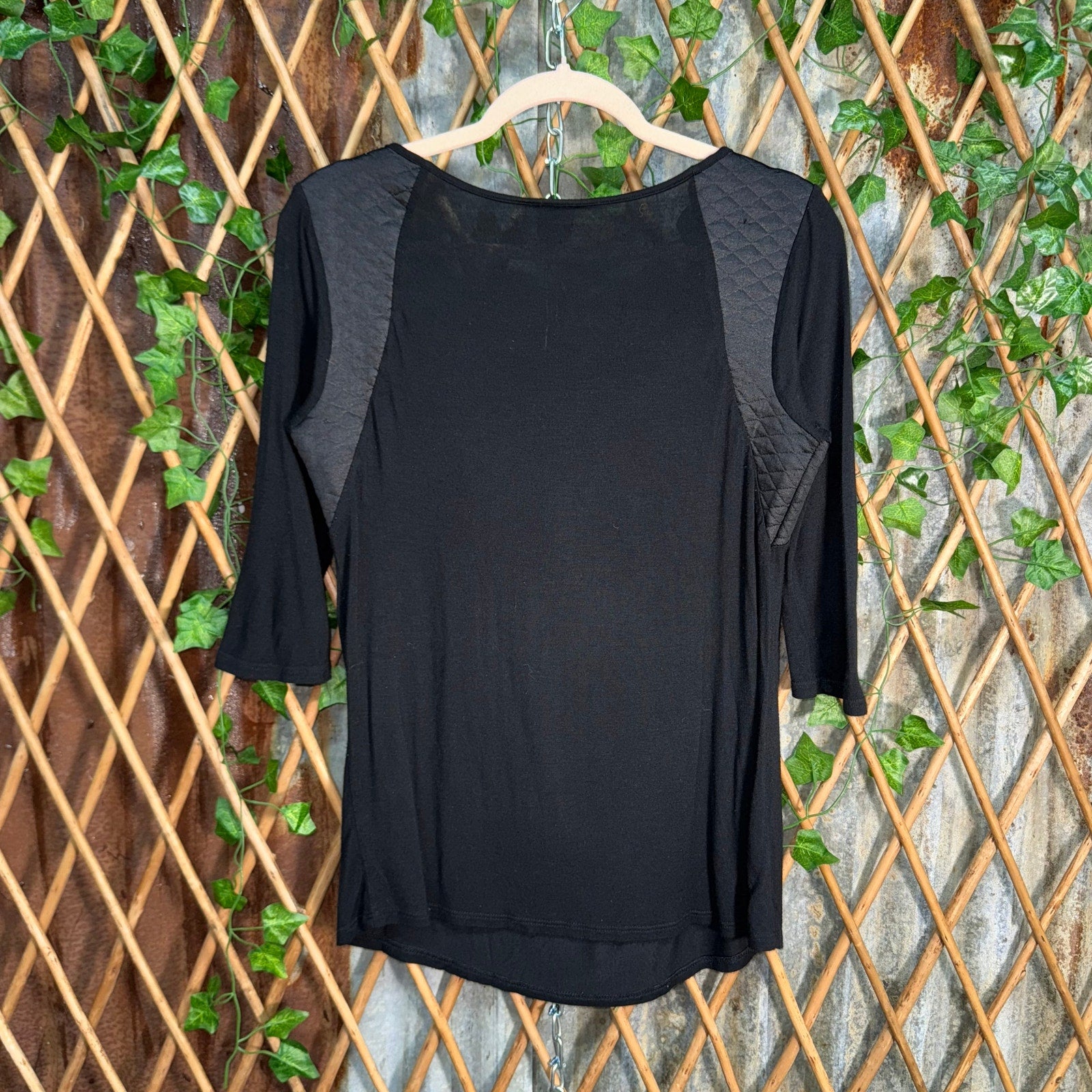 Vintage / Y2K Harley Davidson, American spirit, angel, wings, heart cross rhinestone bling bedazzle front hit three-quarter sleeve black T-shirt, essential women/femme