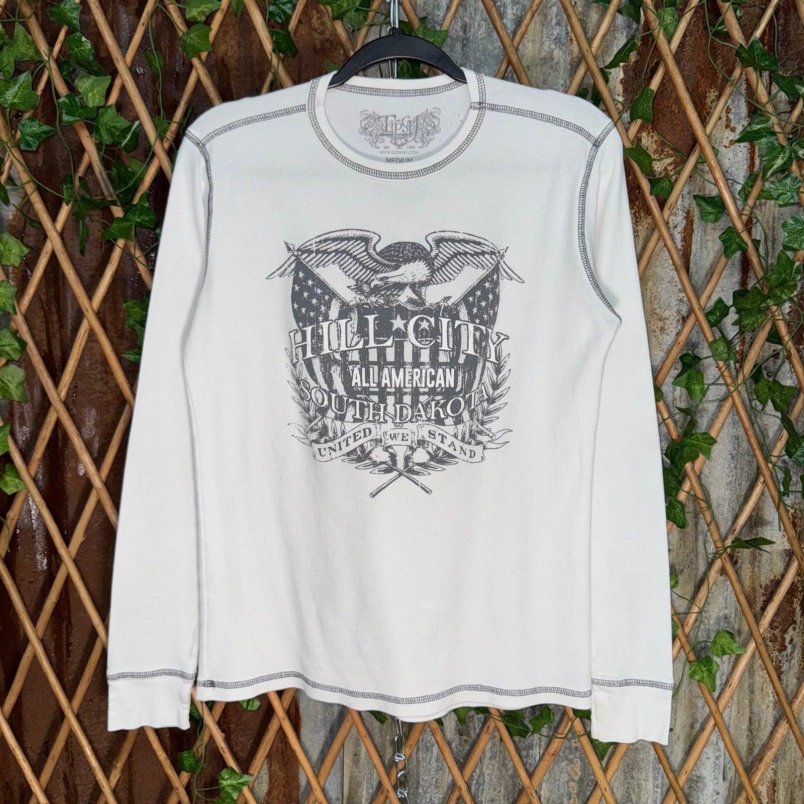 Vintage / Y2K Hill city all American South Dakota United we stand affliction style Femme /women’s thermal ribbed long sleeve with black stitching on tipsy tag made in USA