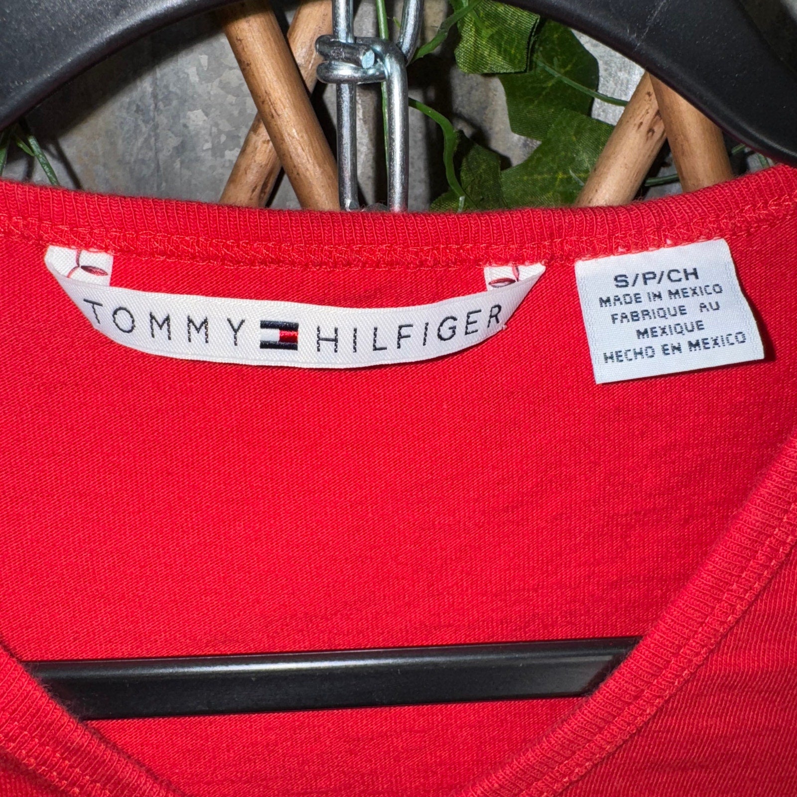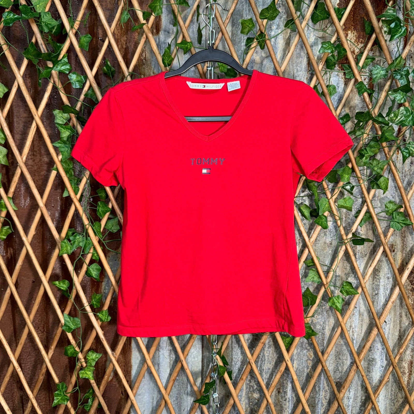 Vintage / Y2K Tommy Hilfiger small spell out chest hit femme/women’s red T-shirt, shirt essential 2000s era preppy style