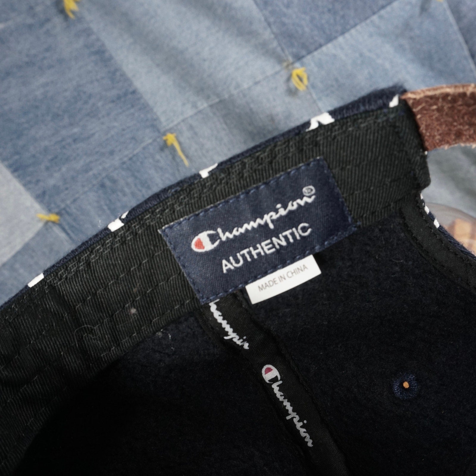 OSFA - Vintage / Y2K champion script spell out AOP all over print hat, essential leather strap