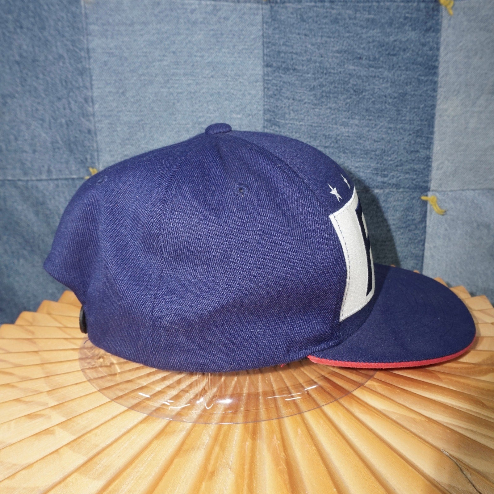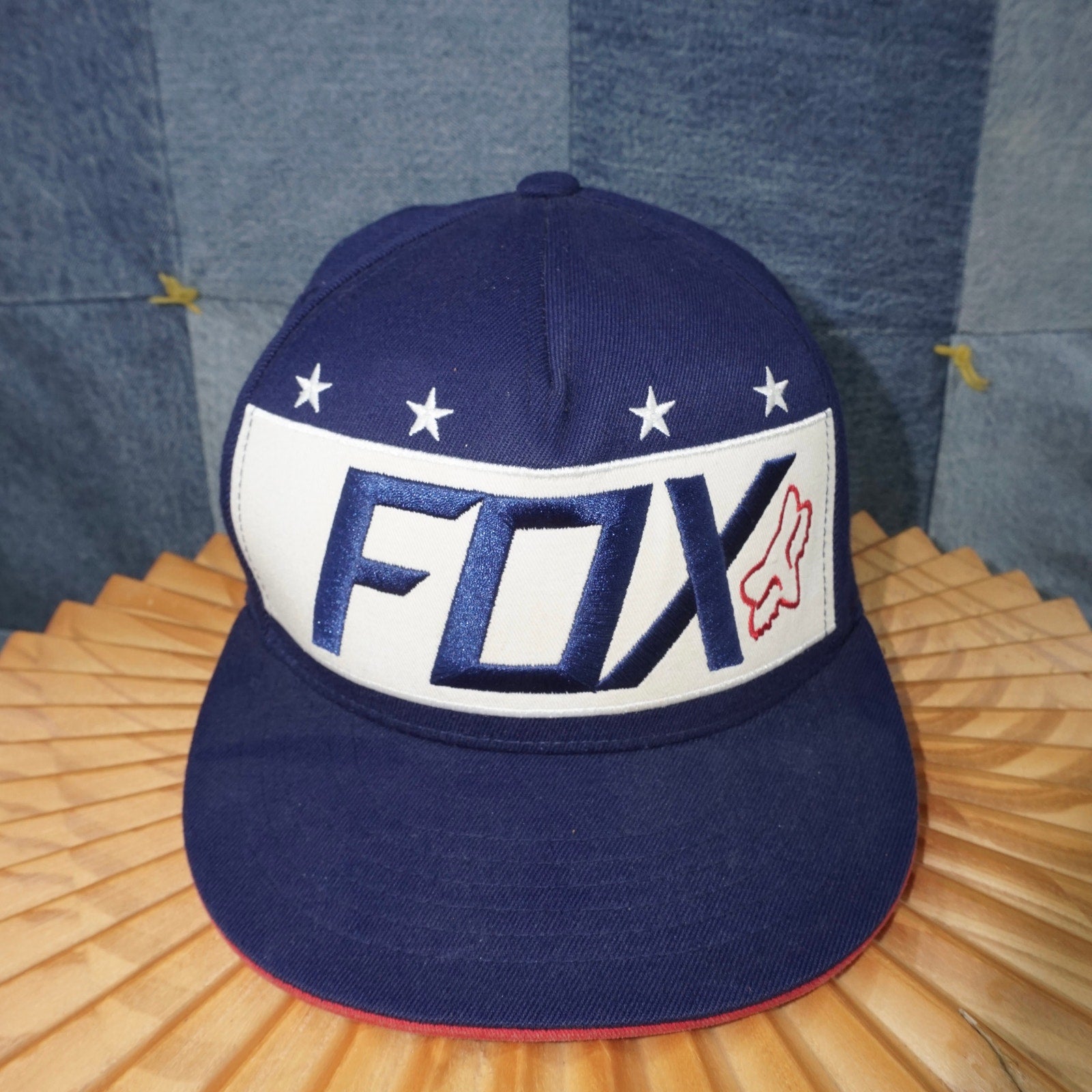 OSFA - fox, racing, biking, outdoors, off-road nature style, USA, American flag style hat, blue color with white accents and red