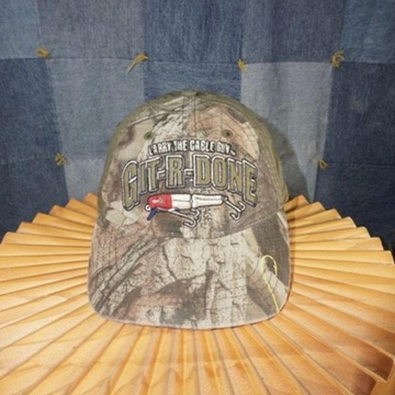 OSFA - Vintage / Y2K Larry the cable guy git-r-done embroidered out fishing, real tree hat essential front and back hit cracked bill, still wearable