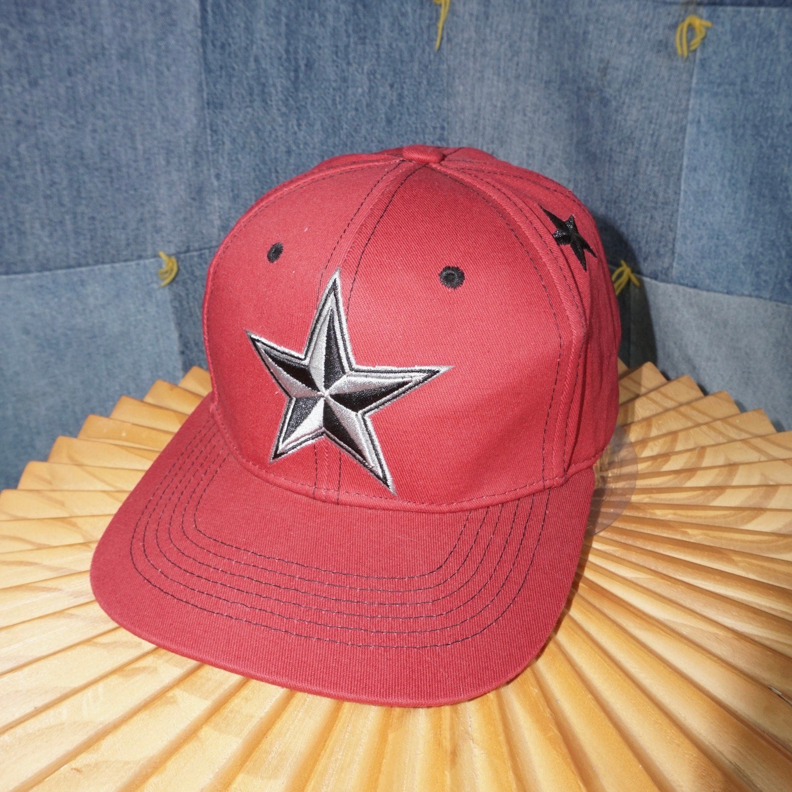 OSFA - Vintage / Y2K embroidered nautical star small stars around hat, double-sided 2000s era red color with black accents essential