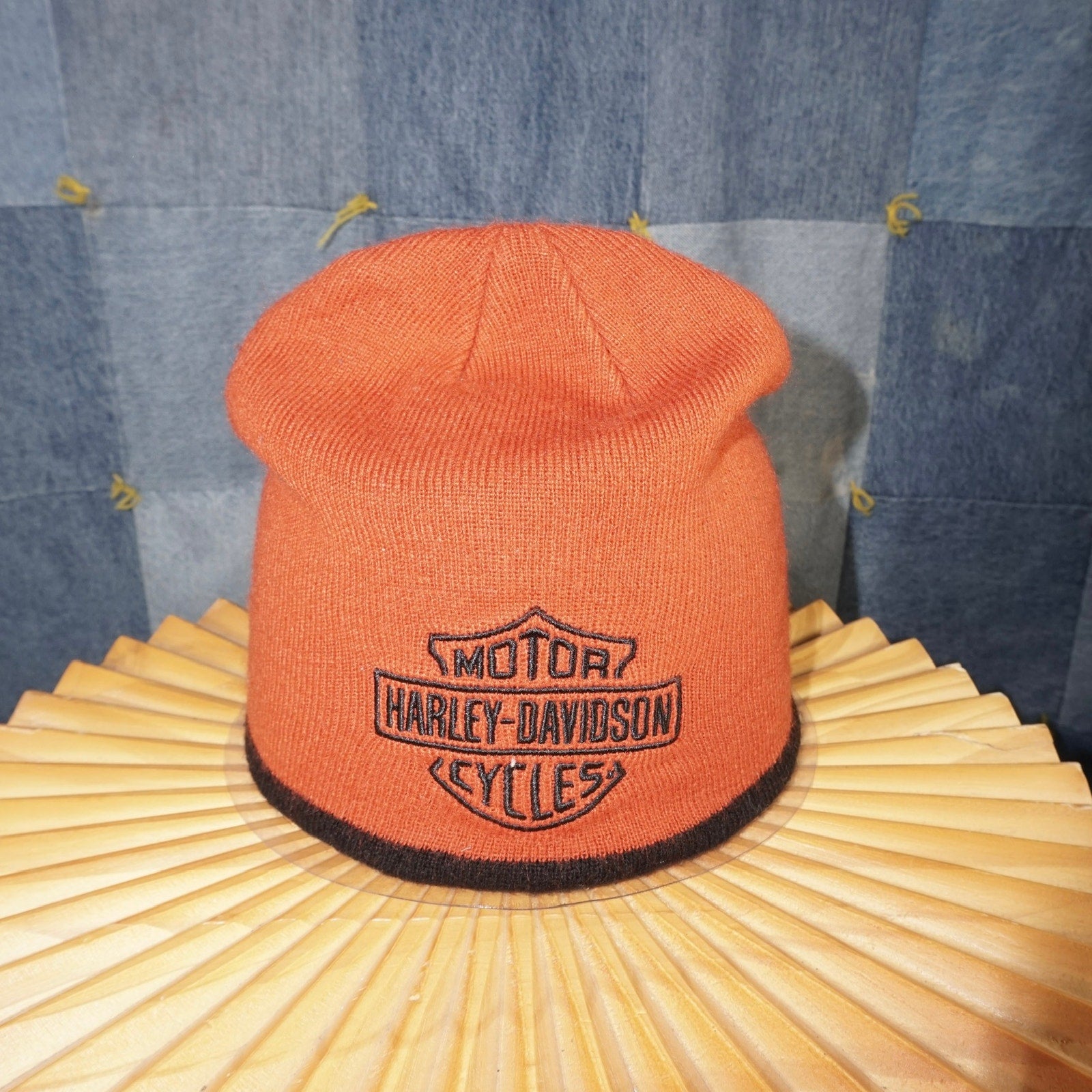 OSFA - Vintage / Y2K Harley Davidson motorcycles embroidered logo beanie 1990s/2000s era orange color away with black accent essential rare winter wear