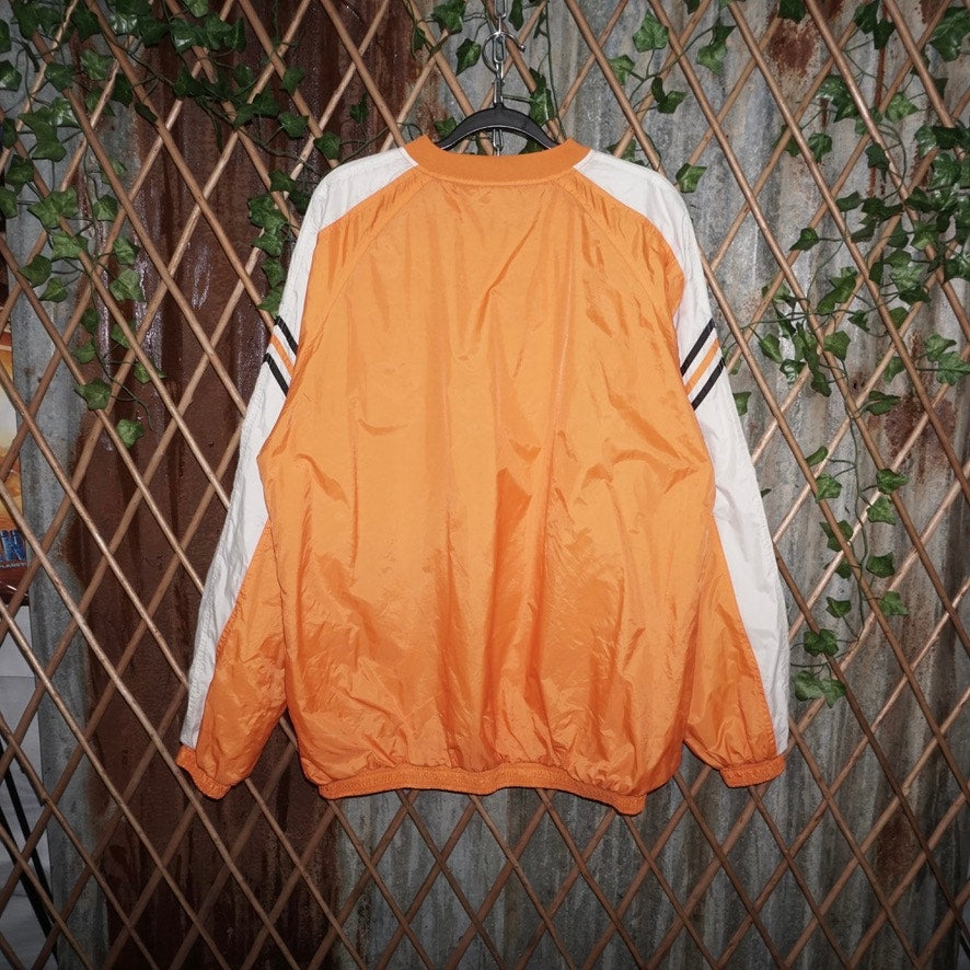 Large - Vintage / Y2K Adidas spell out chest hit embroidered pullover, windbreaker jacket, orange color away with white accent sleeve three stripes piping 1990s/2000’s era Texas style essential
