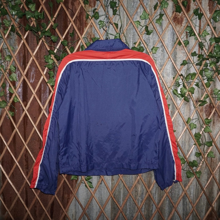 Small - Vintage / Y2K Nike half zip chest hit spell out swoosh/check straight down sleeve navy blue/red color way super old Nike sportswear made in USA Tag 1970s/1980s era almost true vintage