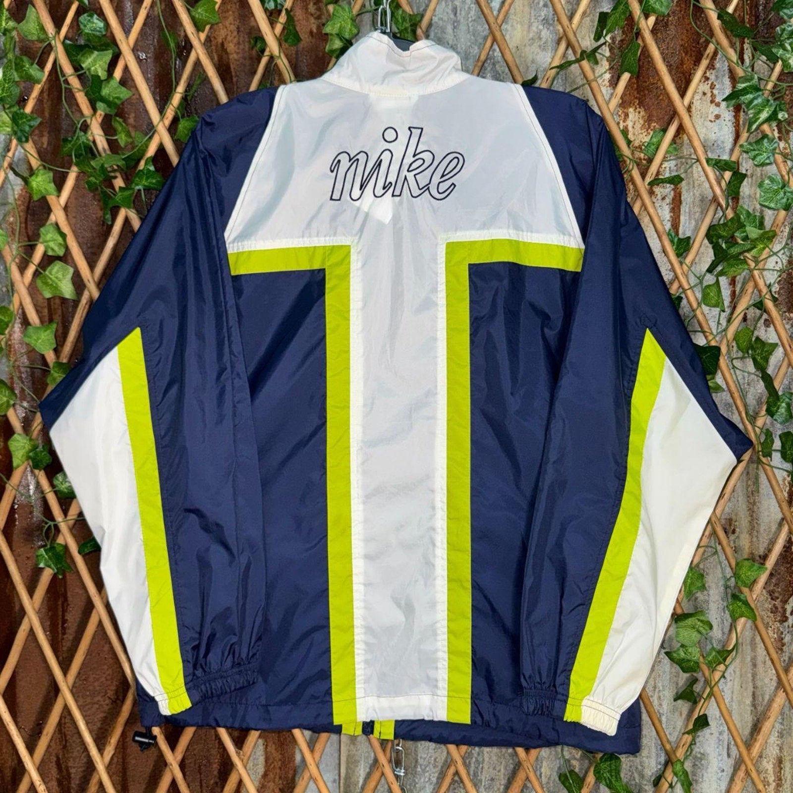 Vintage / Y2K Nike 1990s windbreaker lightweight jacket 3 tone navy / green / white front embroidered swoosh / check & spellout back hit essential grail