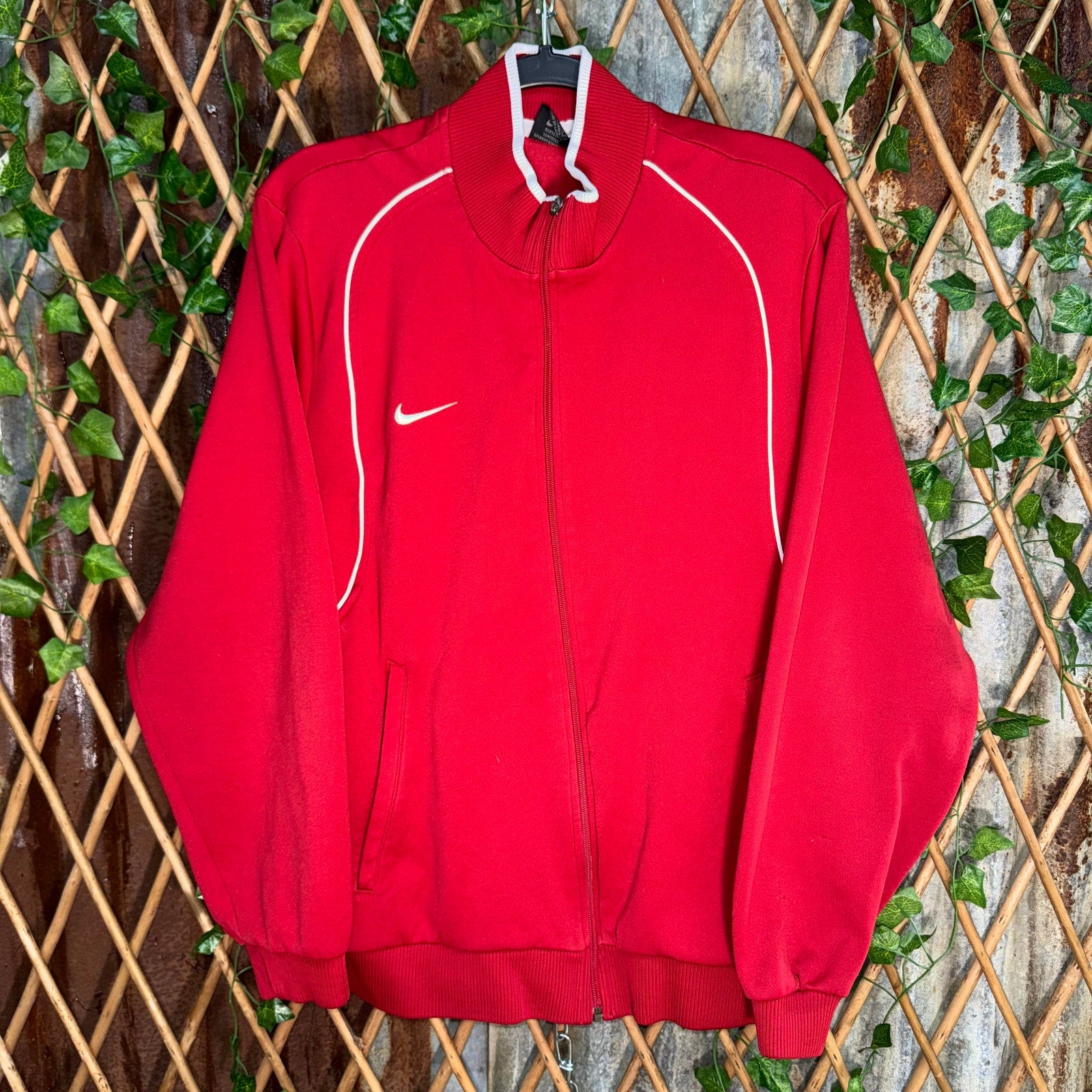 Vintage / Y2K Nike zip up track jacket tracksuit top embroidered check / swoosh logo red/white color way on gray Tag 2000’s era