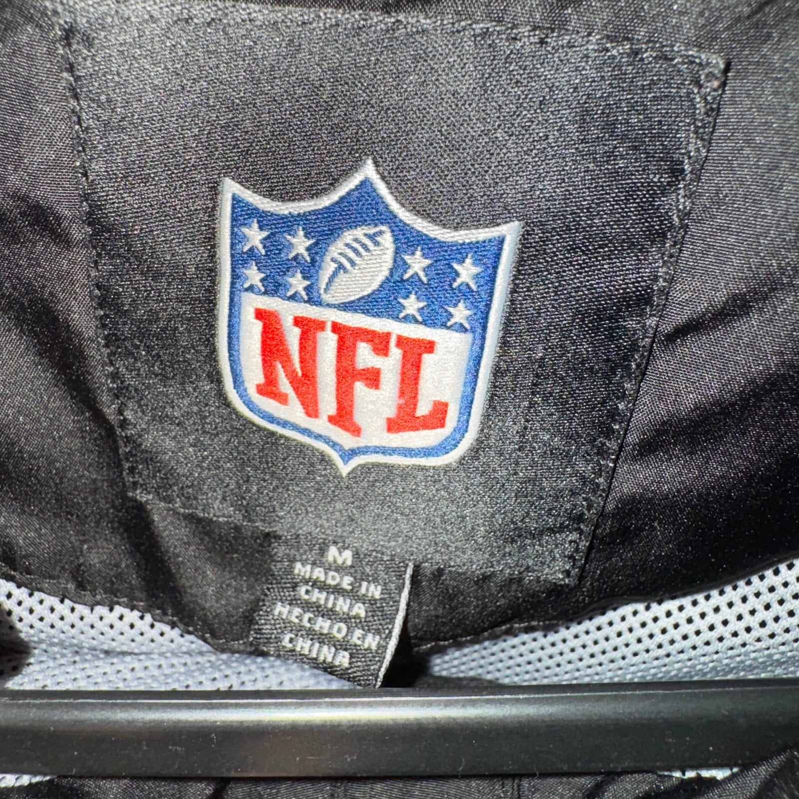 Vintage / Y2K Raiders quarter zip 1/4 zip embroidered spell out chest hit logo lightweight windbreaker on NFL tag football essential black color, way cyber graphic on sleeves essential sportswear Las Vegas Los Angeles