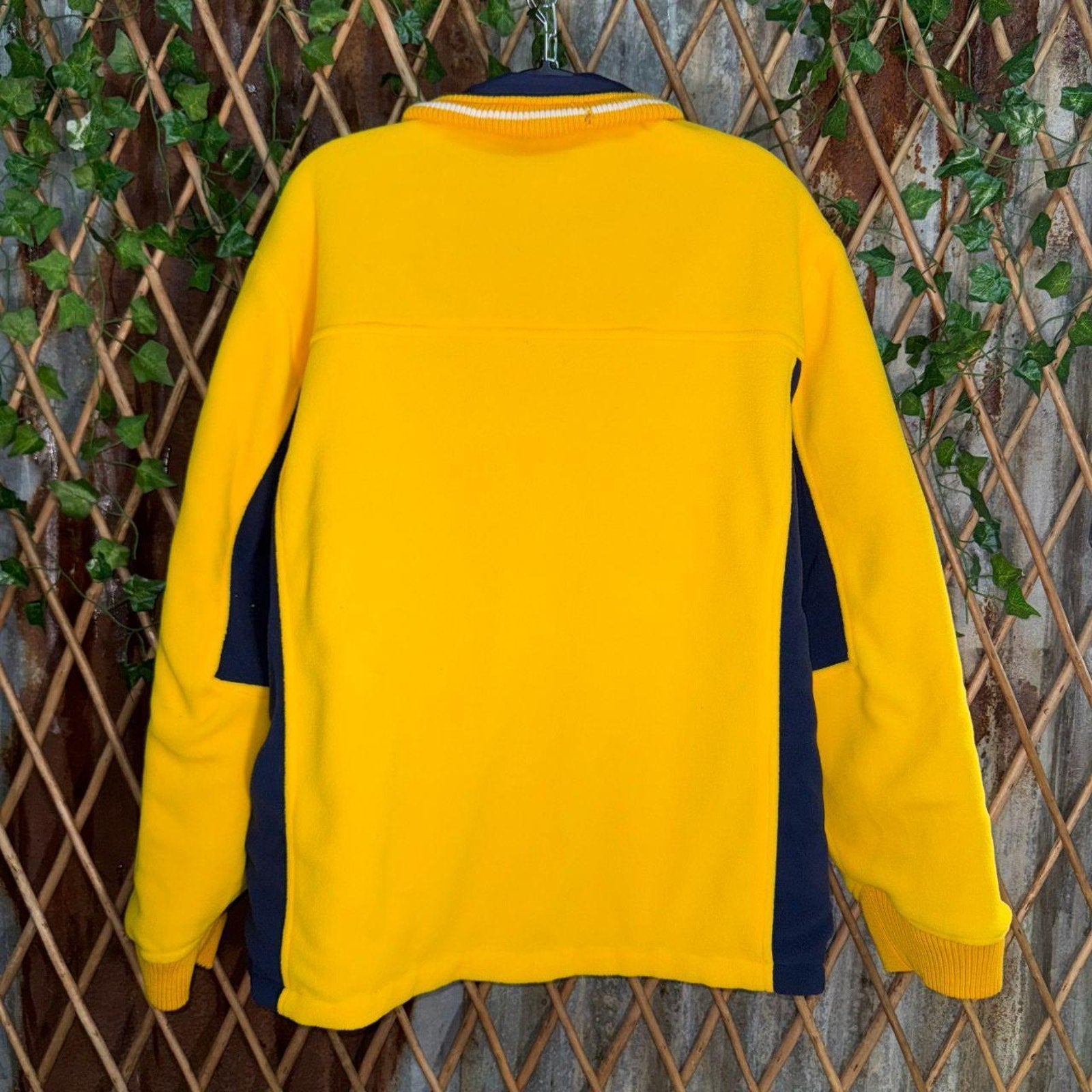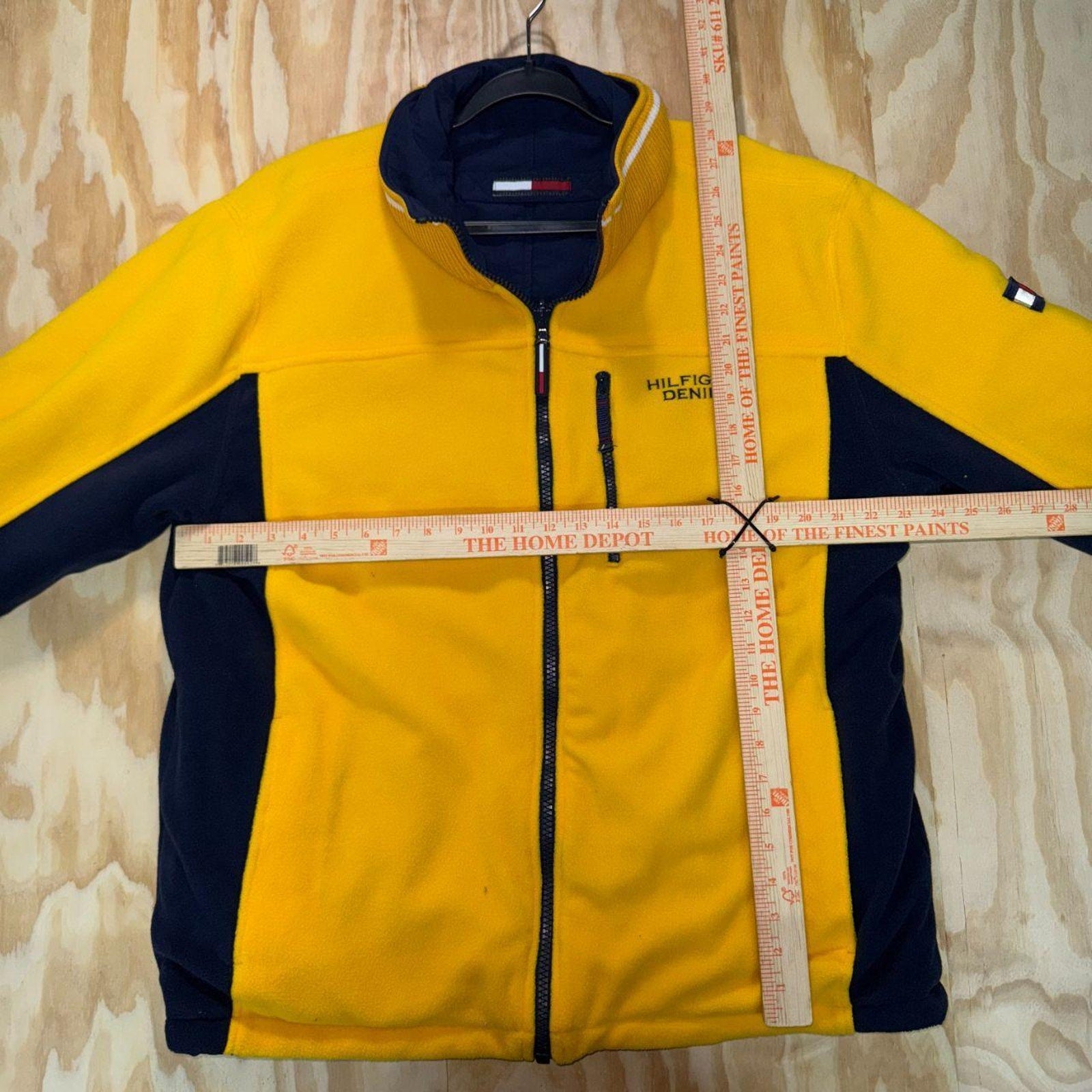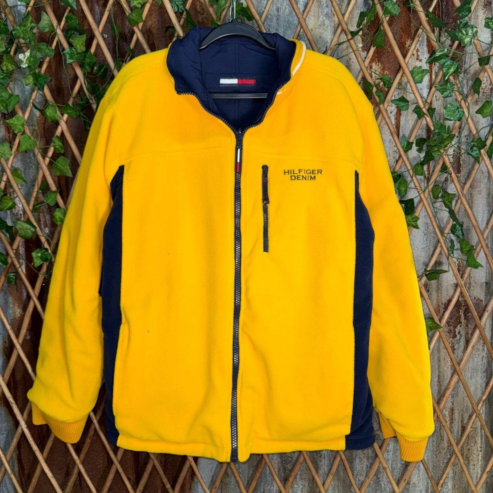 Vintage / Y2K Tommy Hilfiger denim embroidered puffer jacket reversible fleece navy/yellow color way 1990s/2000s