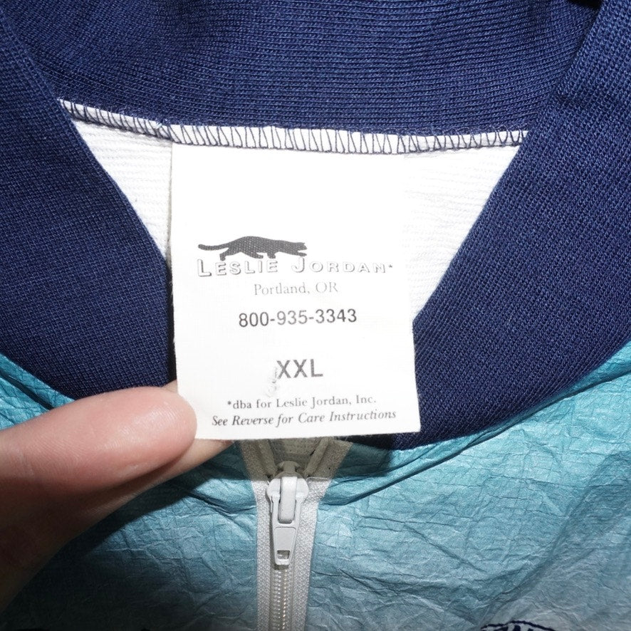 XXL - Vintage / Y2K HUTTIG X Dupont TYVEK home wrap zip up lightweight, packable, windbreaker super cool beach, vibe running couple men and woman on Leslie jordan Portland, Oregon Tag front and back hit double-sided multiple graphic AOP essential lightweight