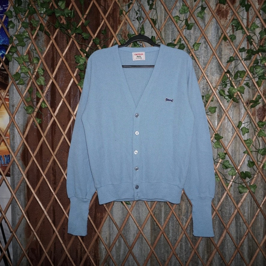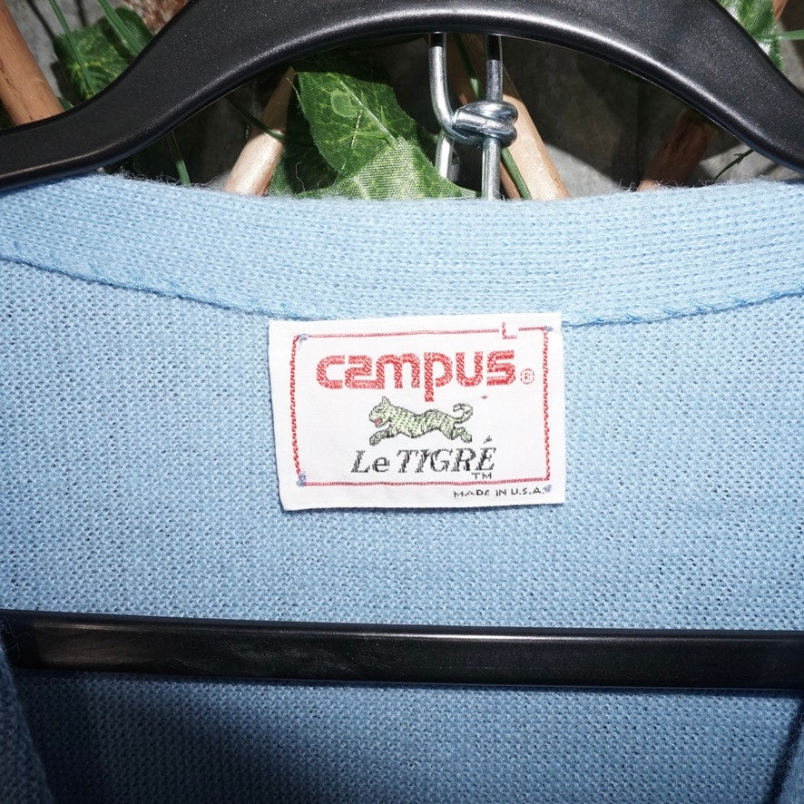 Large - Vintage / Y2K campus X Le Tigre brand Lacoste style Tyler, The Creator golf Lefler style button up baby blue cardigan tiger embroidered Patch chest hit essential 1990s era made in USA preppy style