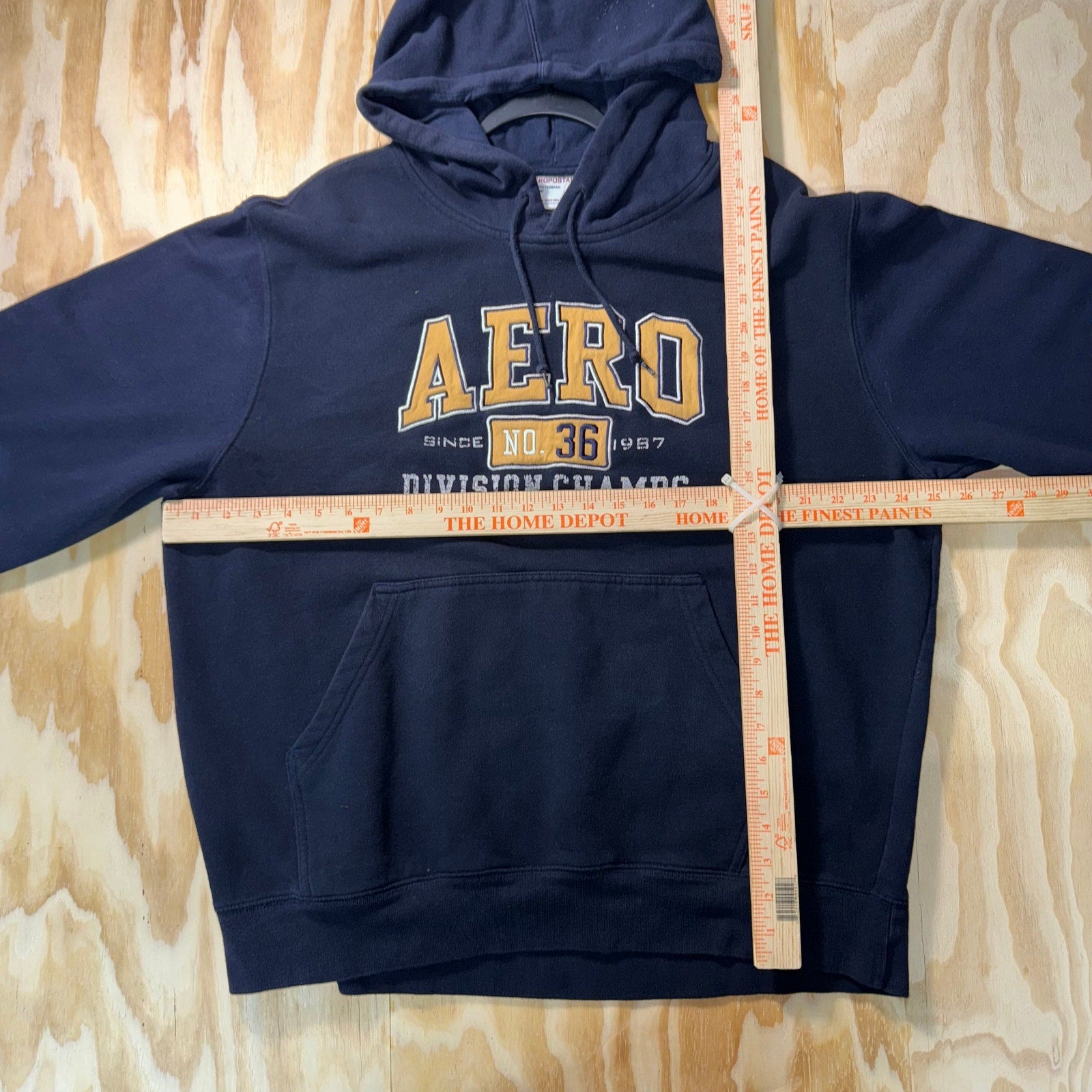 Vintage / Y2K aeropostle authentic trademark since 1987 limited edition collegiate style arc logo no.36 division, champs heavyweight, navy blue sweatshirt, embroidered logo