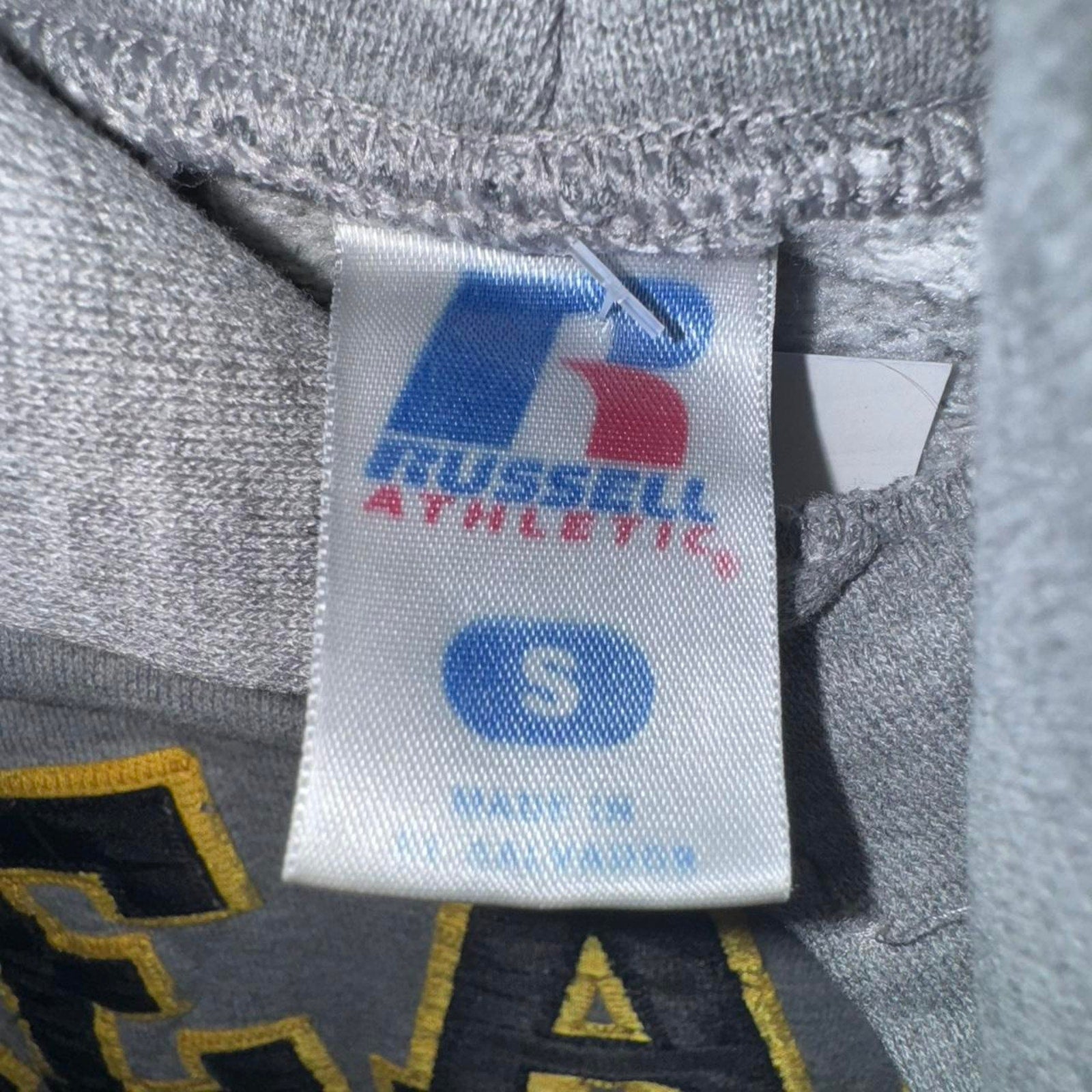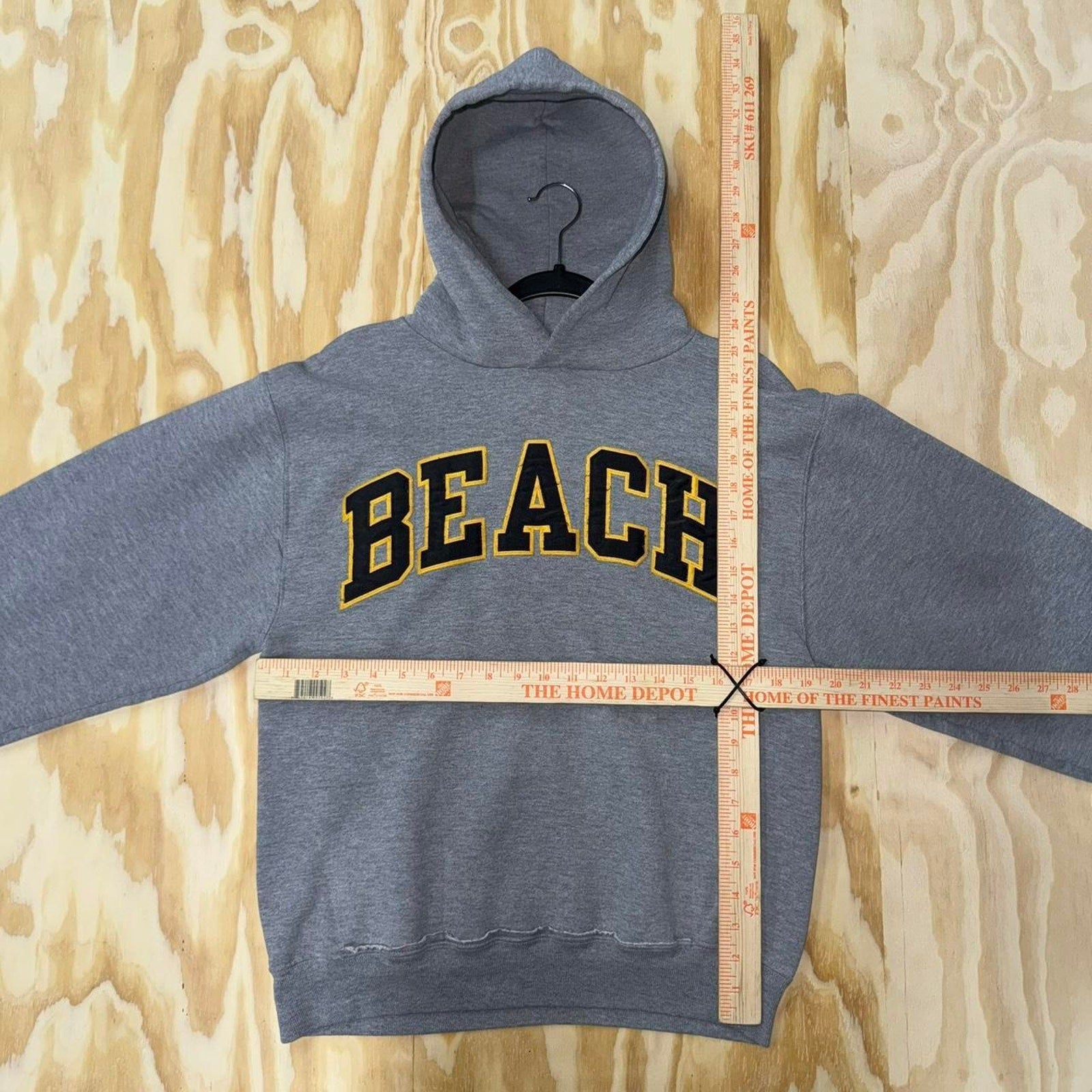 Vintage / Y2K Beach spellout collegiate heavyweight grey hooded sweatshirt Russel athletic black / yellow letters boxy fit