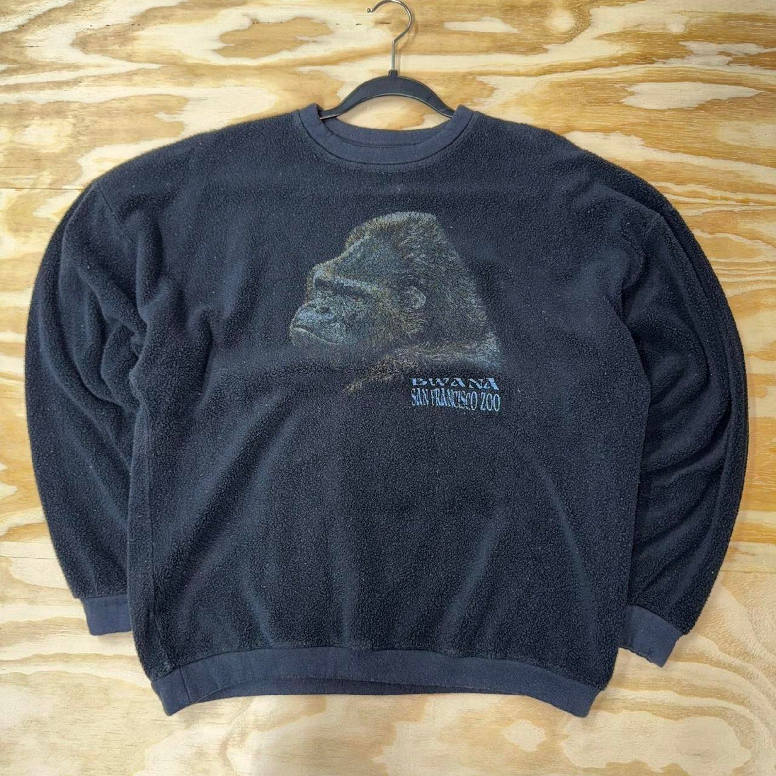 Vintage / Y2K Bwana San Francisco zoo 1990’s gorilla face Sherpa style fleece crewneck on u betcha tag made in USA harambe DOFH