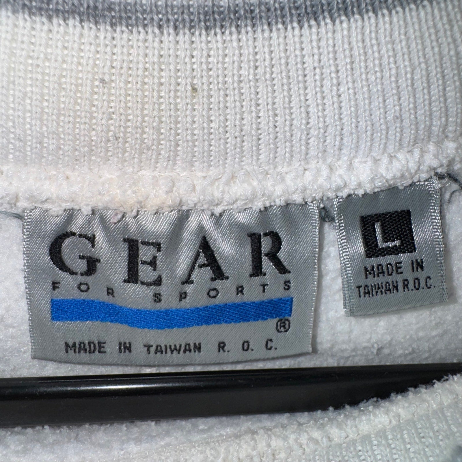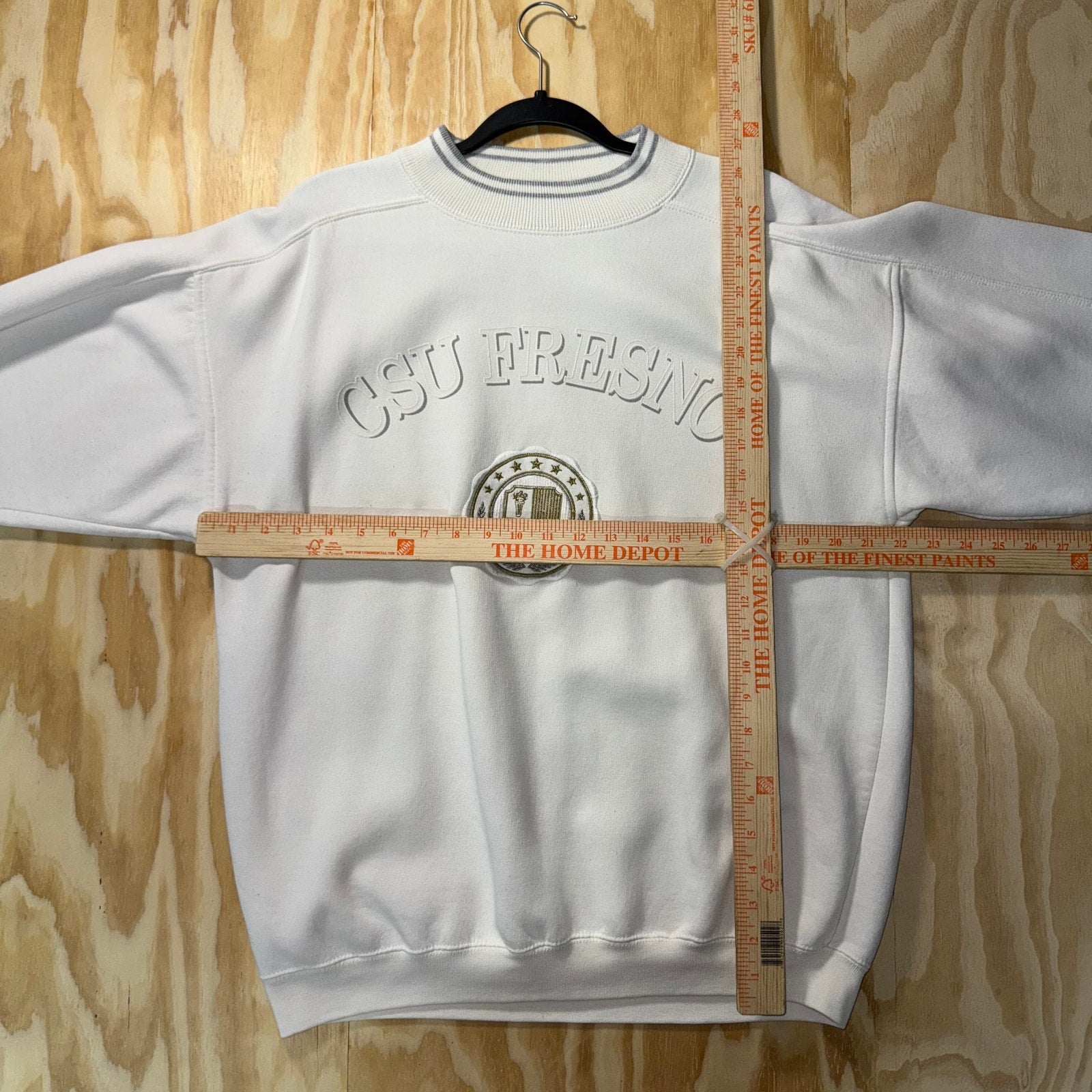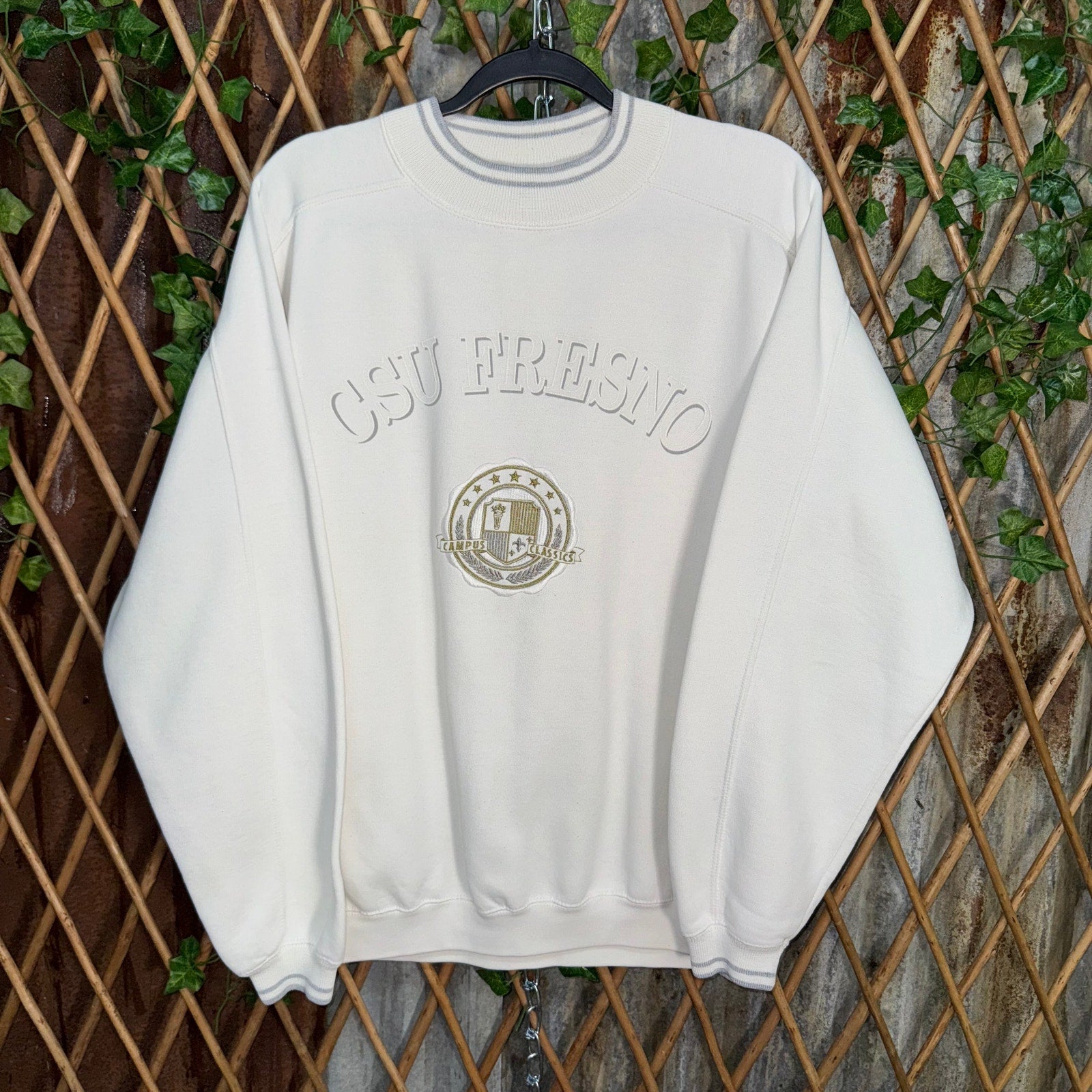 Vintage / Y2K CSU Fresno campus Classics embroidered Patch on gear for sports tag collegiate college university Fresno State Bulldogs white crewneck sweatshirt 1990s era