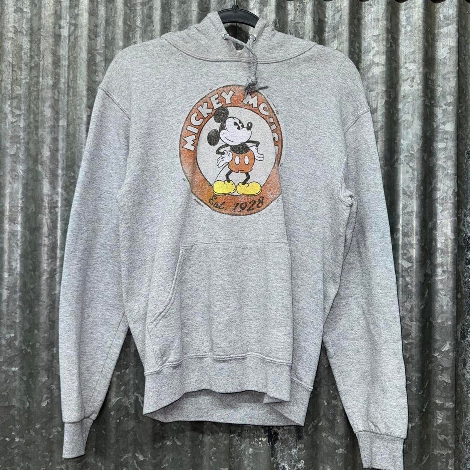 Vintage / Y2K DisneyLand Mickey mouse essential Front graphic logo with throwback mickey “est 1928” Grey Heavyweight Hoodie hooded sweatshirt