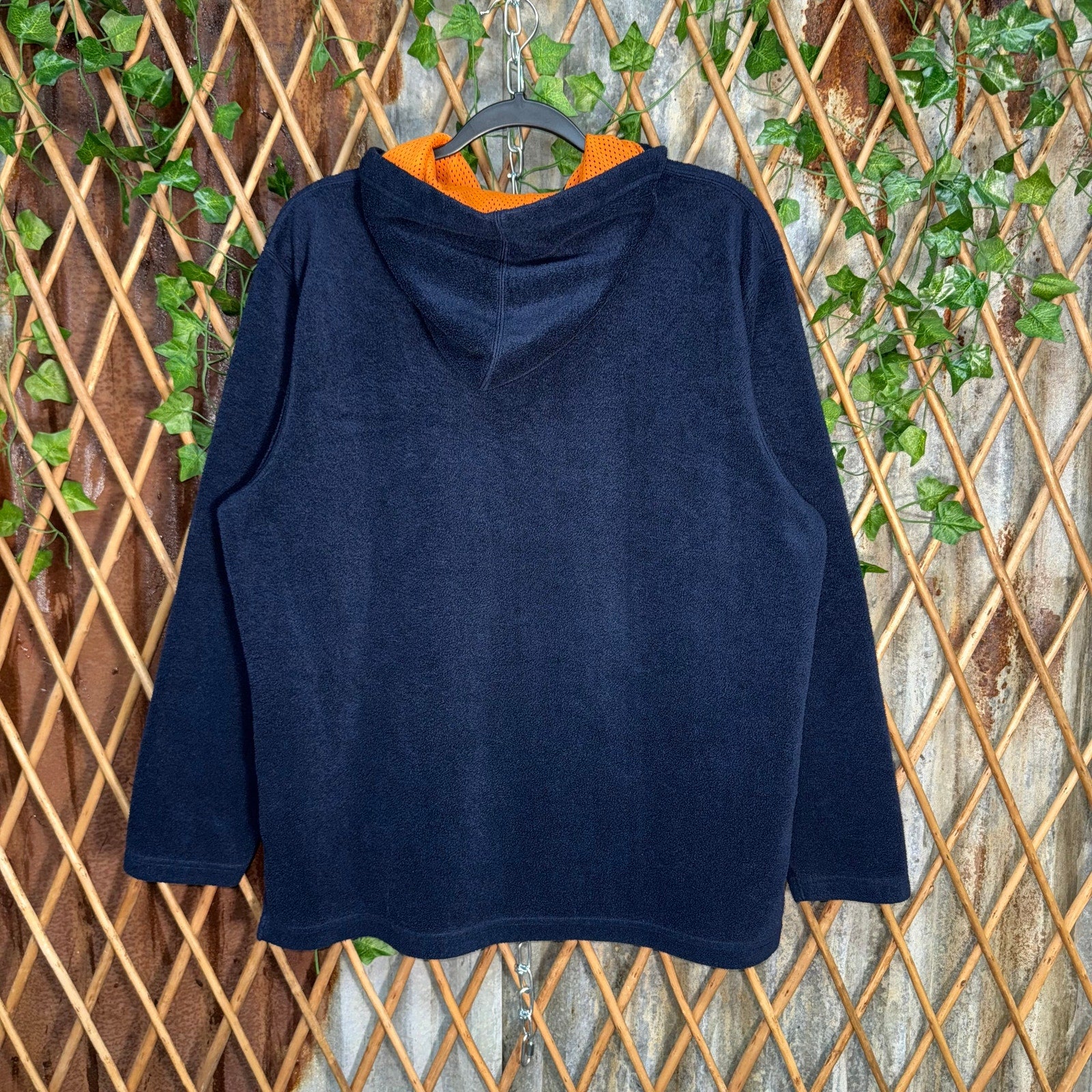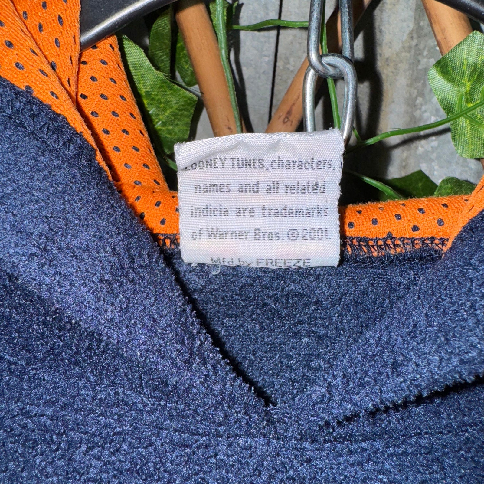 Vintage / Y2K authentic athletics, Looney Tunes Tweety Bird Warner Bros licensed 1990s/2000 era fleece hooded sweatshirt navy blue hoodie with orange knitted interior hood essential kid core TV show cartoon promo
