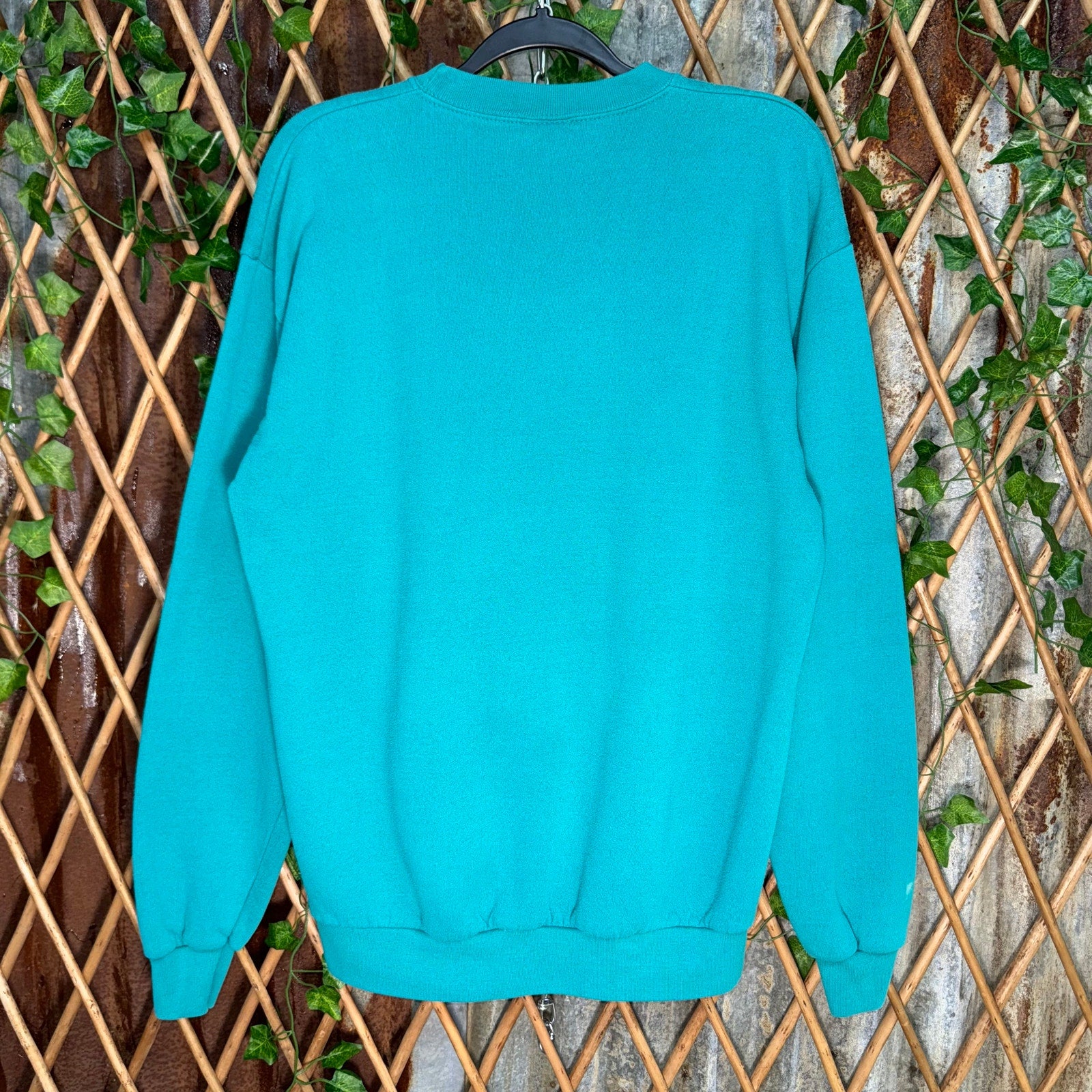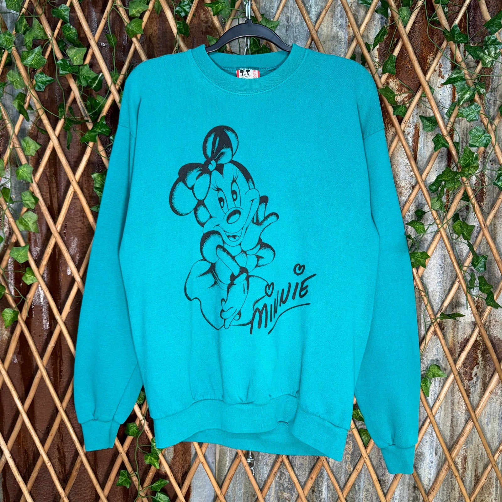 Vintage / Y2K Minnie mouse teal blue crewneck sweatshirt silhouette shadow style spell out 1990s era made in USA Mickey, Disney designs essential Disneyland piece