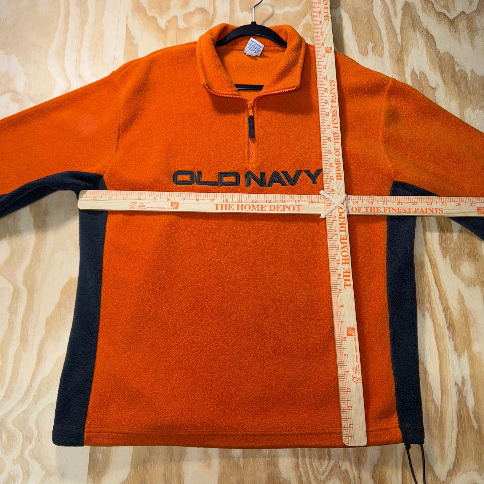 Vintage / Y2K Old Navy quarter zip embroidered spell out logo essential surf wear skate wear style orange color way with gray accents