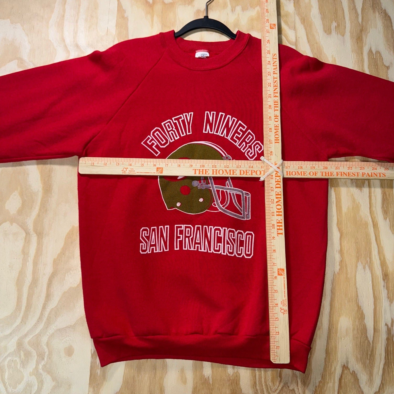 Vintage / Y2K San Francisco 49ers helmet logo spell out graphic 1980/1990s era on Fruit of the Loom cut Tag essentials, sportswear, Bay Area red crewneck sweatshirt raglan style