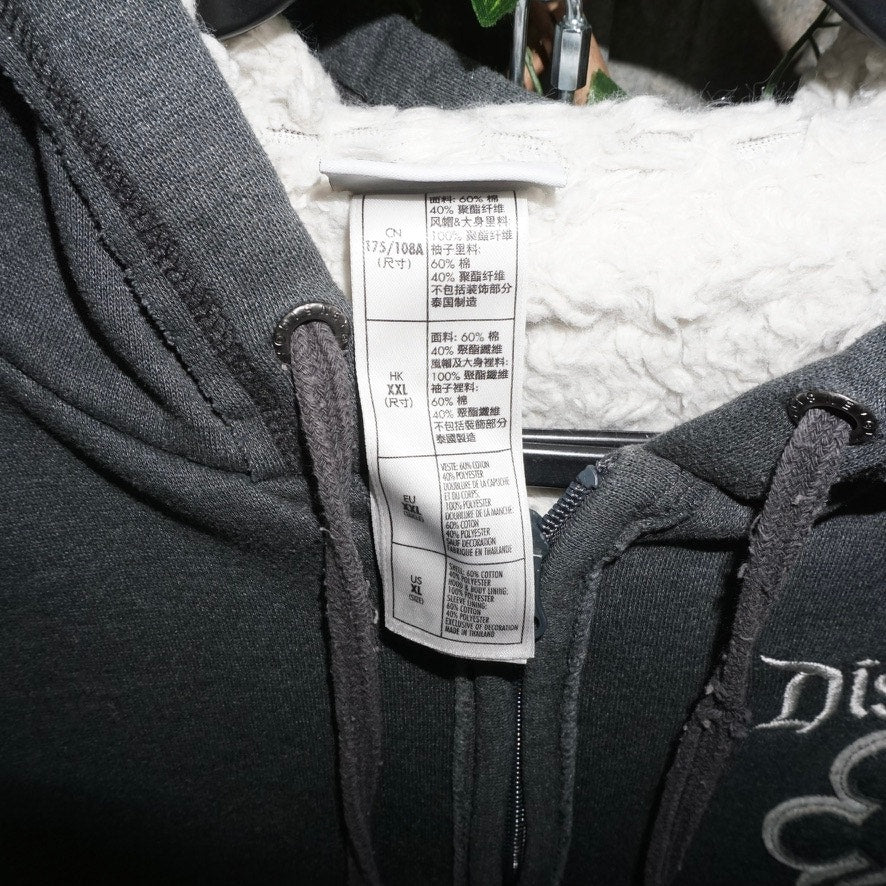 XXL - Vintage / Y2K Disneyland, Mickey Mouse outline zip up hooded sweatshirt, front and back double sided multiple graphic 55th anniversary Sherpa lined women’s/FEMME essential heat gray color