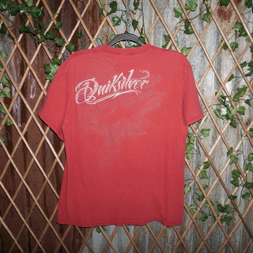 Large - Vintage / Y2K Quicksilver grunge 2000s era, red T-shirt, front and back double sided multiple graphic essential serve/skate style mall Goth
