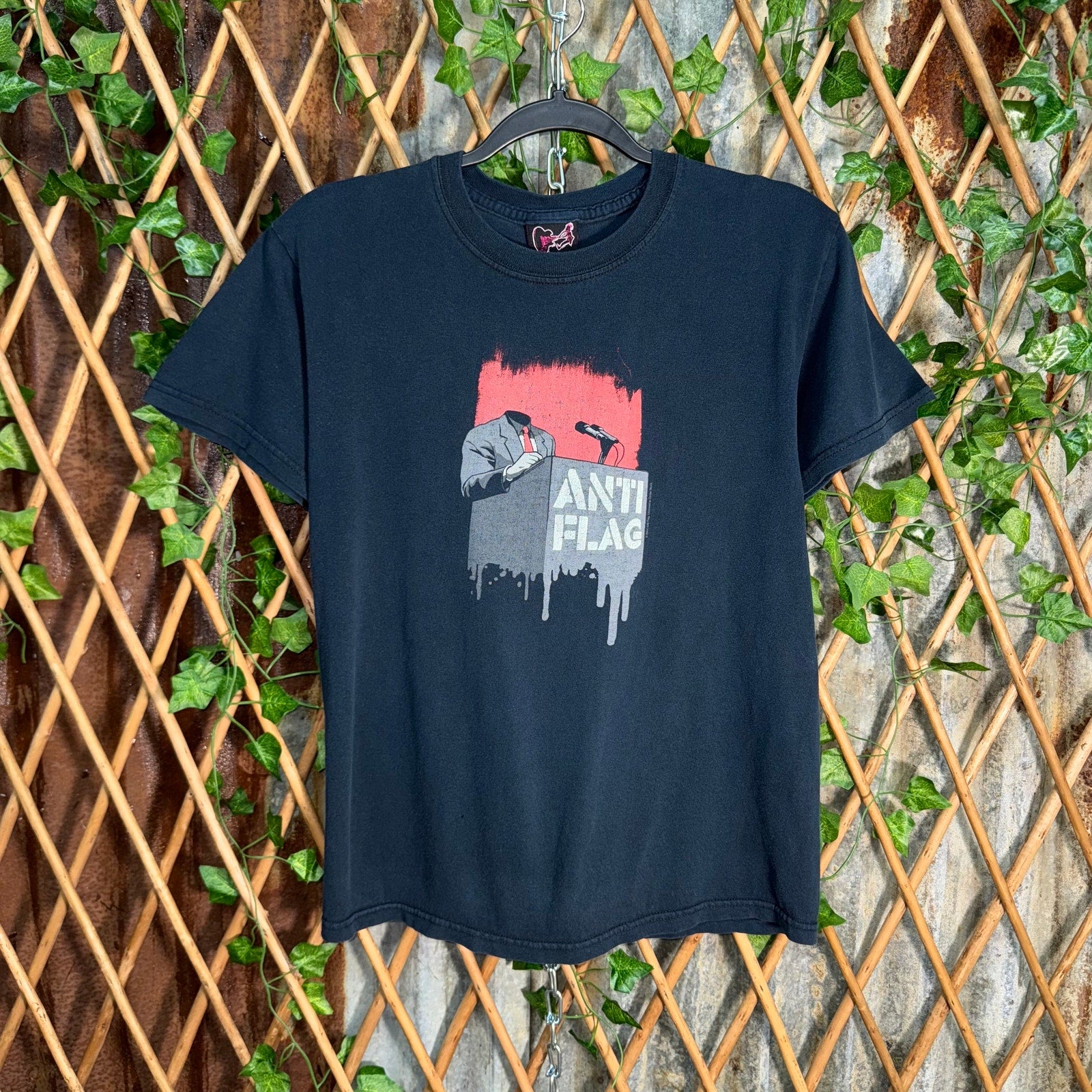 Vintage / Y2K anti-flag 2004 licensed to cinder block black T-shirt, essential graphic rock band propaganda style rage against the machine style grunge, sick piece super rare