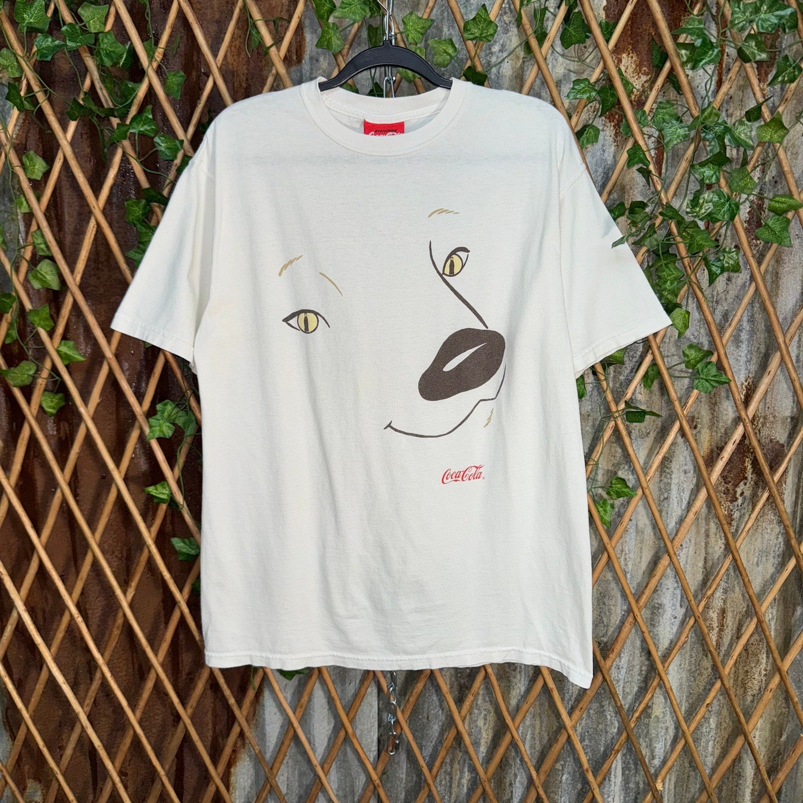 Vintage / Y2K Coke, Coca-Cola soda pop white T-shirt 1990s era USA made polar bear big face logo graphic essential drink promo