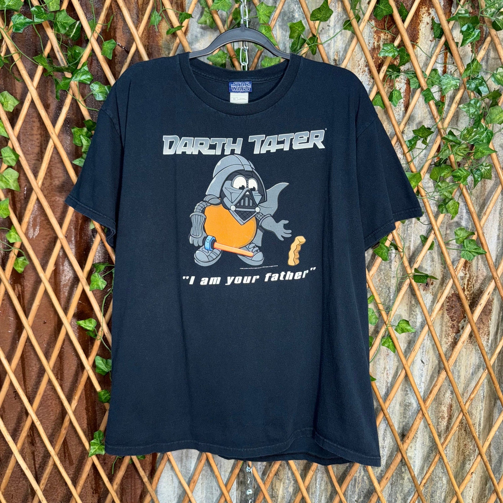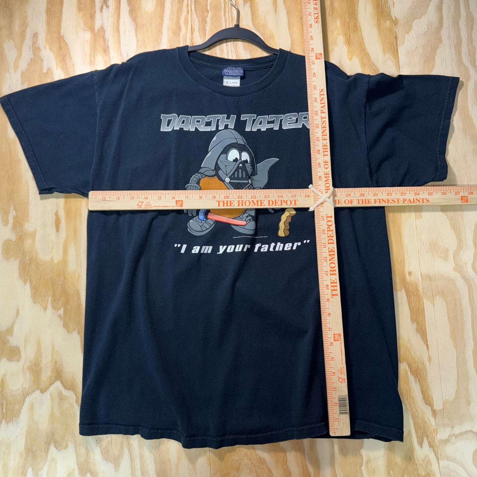 Vintage / Y2K Darth Vader, Star Wars parody Mr. potato head 2006 licensed to Lucas film and Hasbro “darth tater” Luke frywalker faded black T-shirt, super cool, cartoon graphic 2000s era