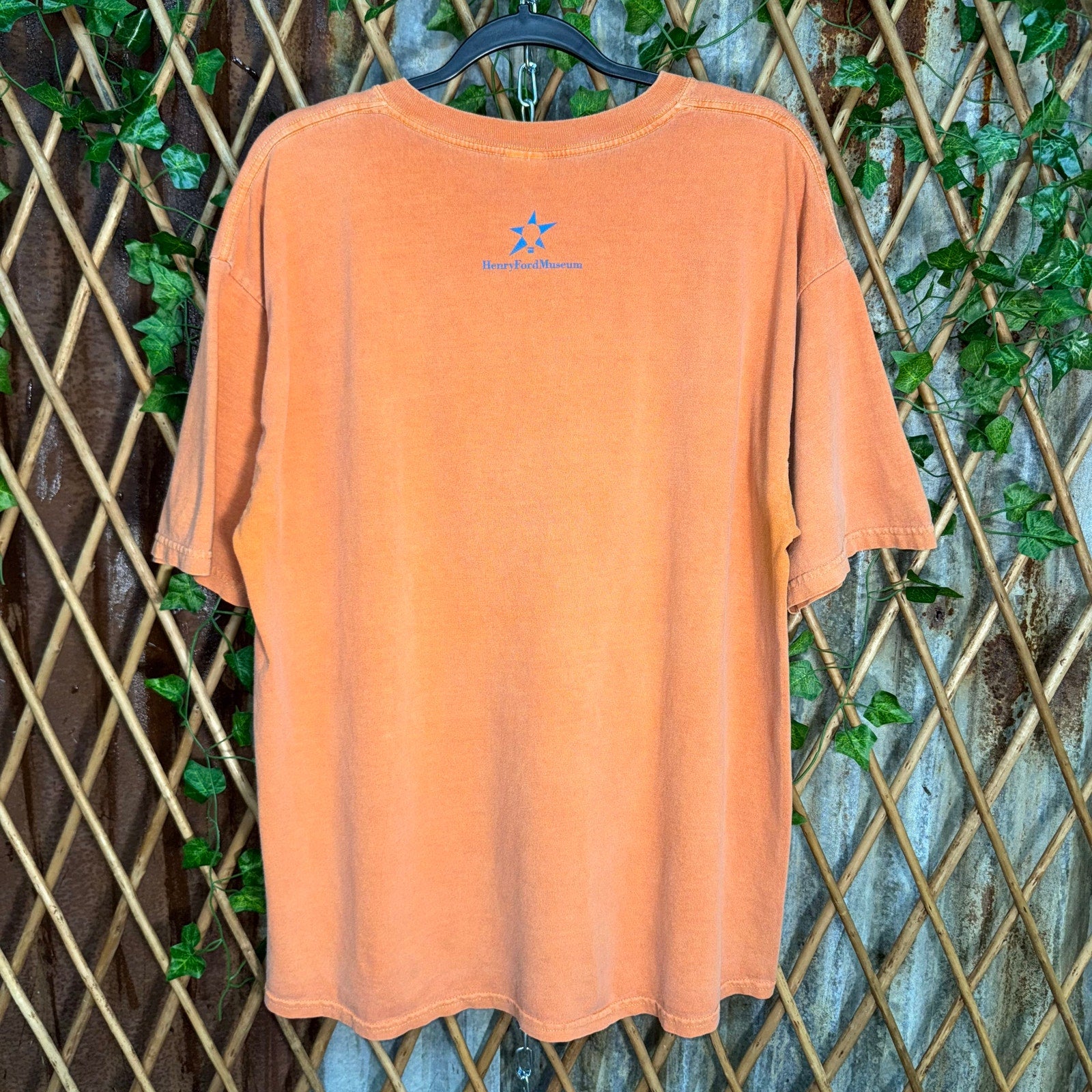 Vintage / Y2K Disneyland behind the magic 50 years anniversary garment died orange T-shirt 2000s era front and small back hit Henry Ford museum promo piece sick fade