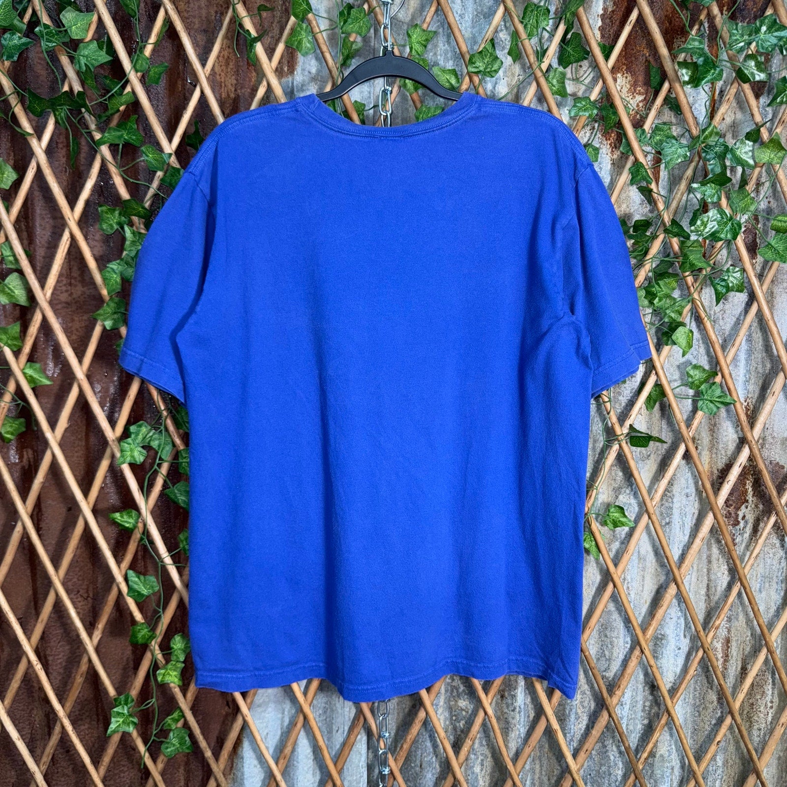 Vintage / Y2K gap essential horizontal stacked graphics snowboard skateboard surf style, sick, graphic stick figure character style essential super cool rare 1990s/2000s era T-shirt blue color way
