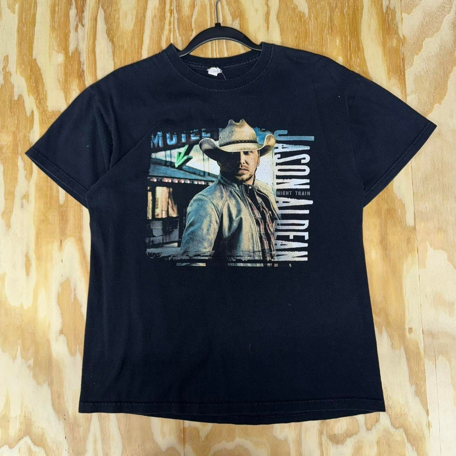 Vintage / Y2K Jason Aldean night train tour front and back hit with dates & locations on anvil tag black T-Shirt country music singer
