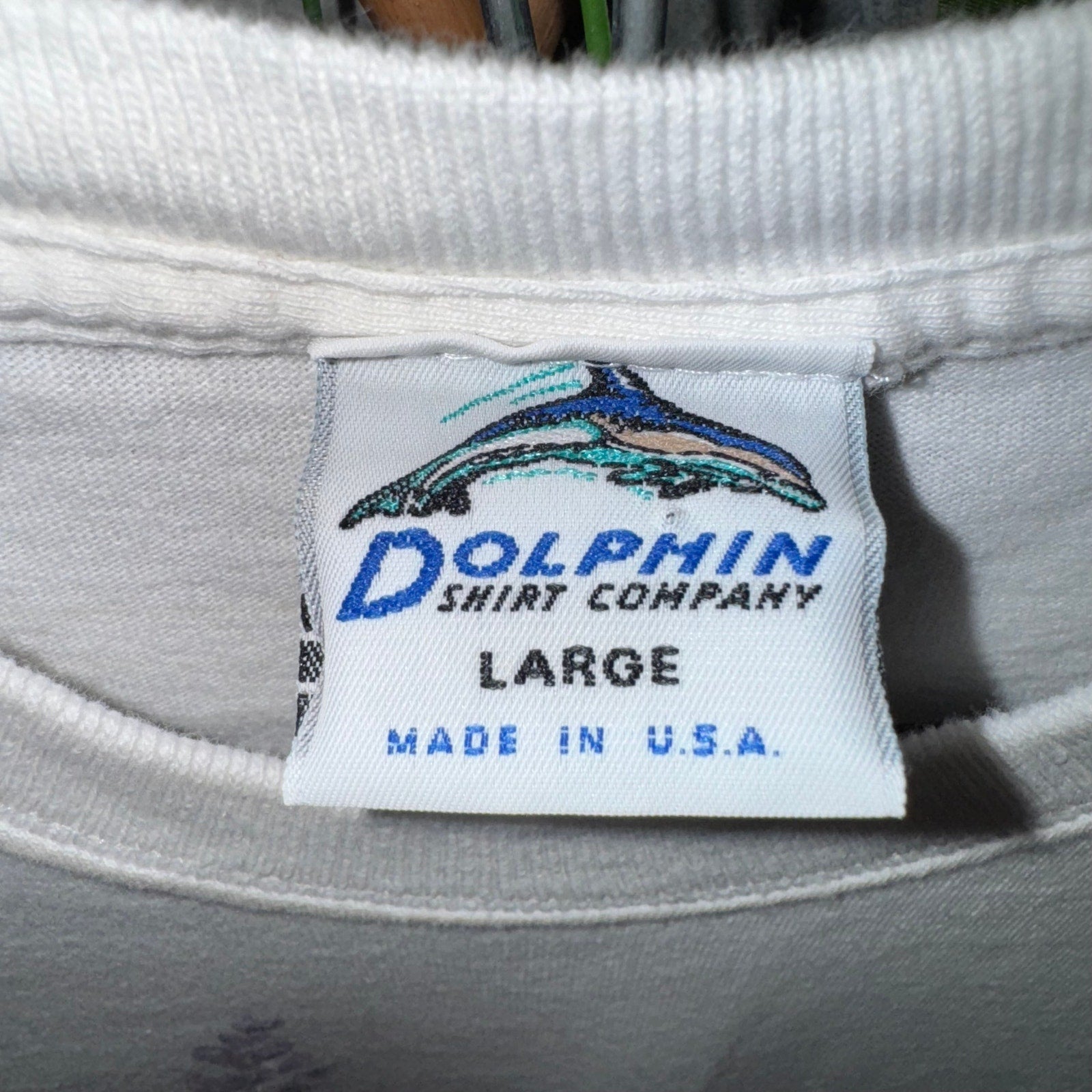 Vintage / Y2K lake Tahoe, dolphin, shirt company, flowers and bird graphic come soothing style 1990s era made in USA front and back kid double-sided multiple graphic white T-shirt