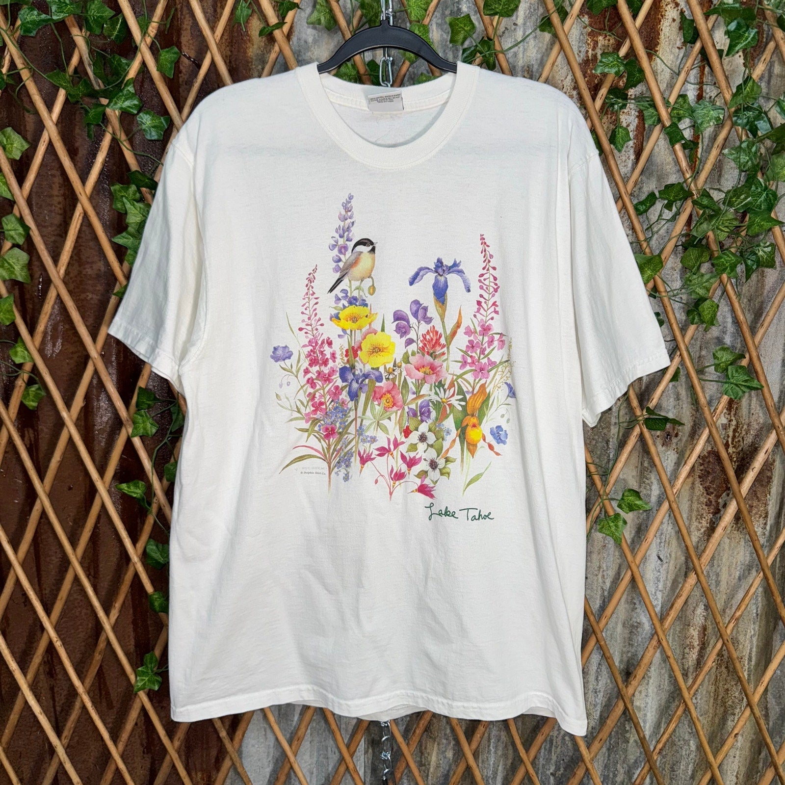 Vintage Y2K lake Tahoe 1990s nature flowers bird t-shirt