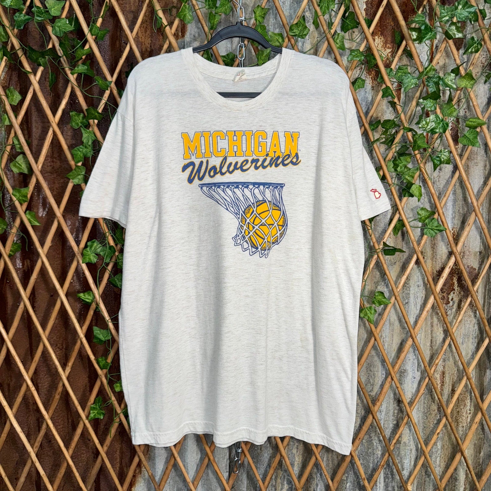 Vintage / Y2K Michigan College University 2000’s era wolverines, basketball Heather Gray lightweight T-shirt, graphic collegiate, essential sportswear made in USA