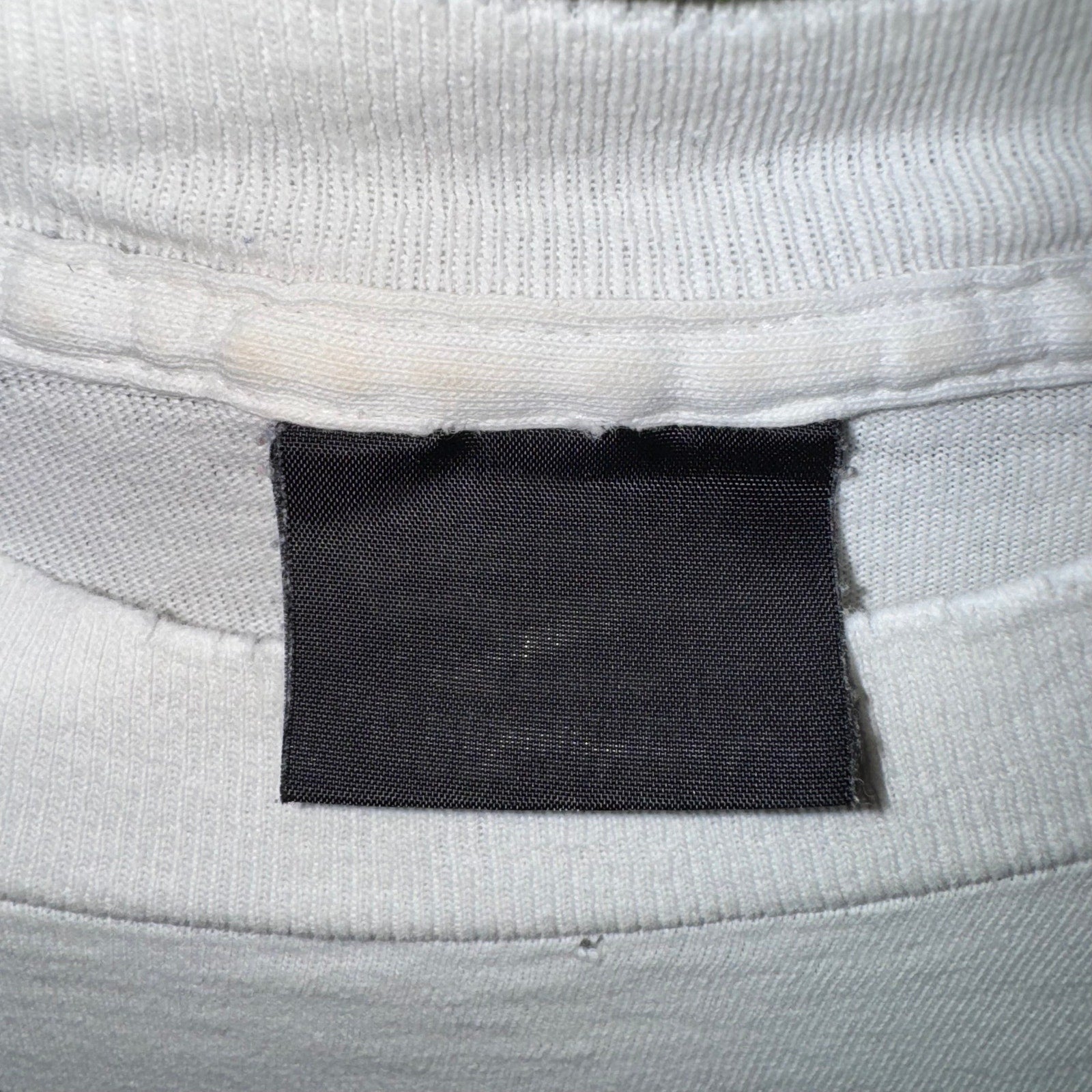 Vintage / Y2K Mo Knows tennis parody of Wilson racket with Three Stooges logo Nike just do it parody just say Mo neon colorways super faded graphic gray super rare white T-shirt paper thin on changes super faded tag 1990s arrow white single stitch USA made TEE