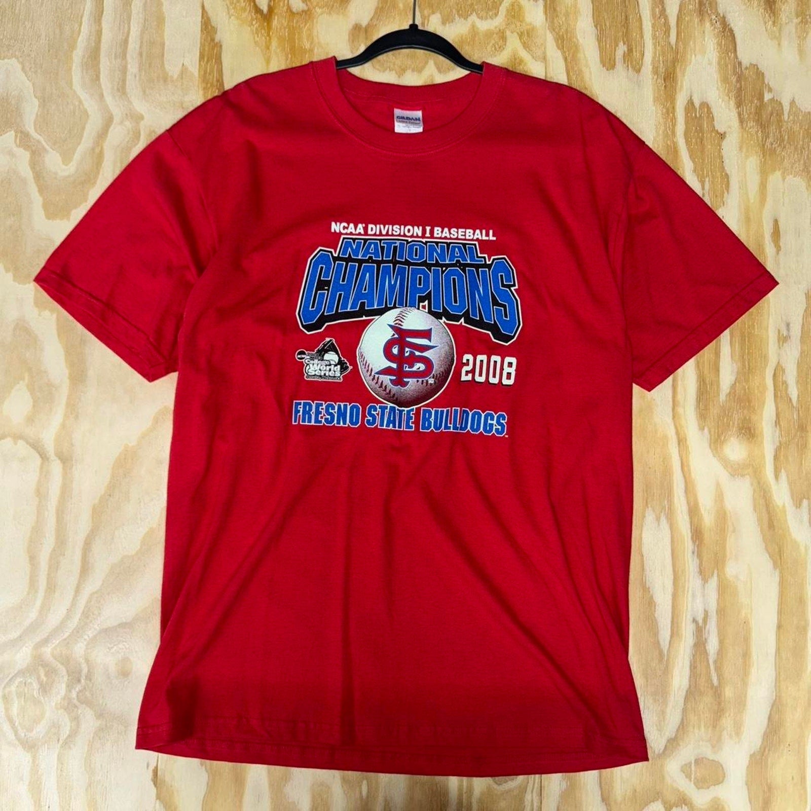 Vintage / Y2K NCAA division one baseball national champions 2008 Fresno State University collegiate College Bulldogs college World Series, Omaha, Nebraska on red T-shirt/TEE