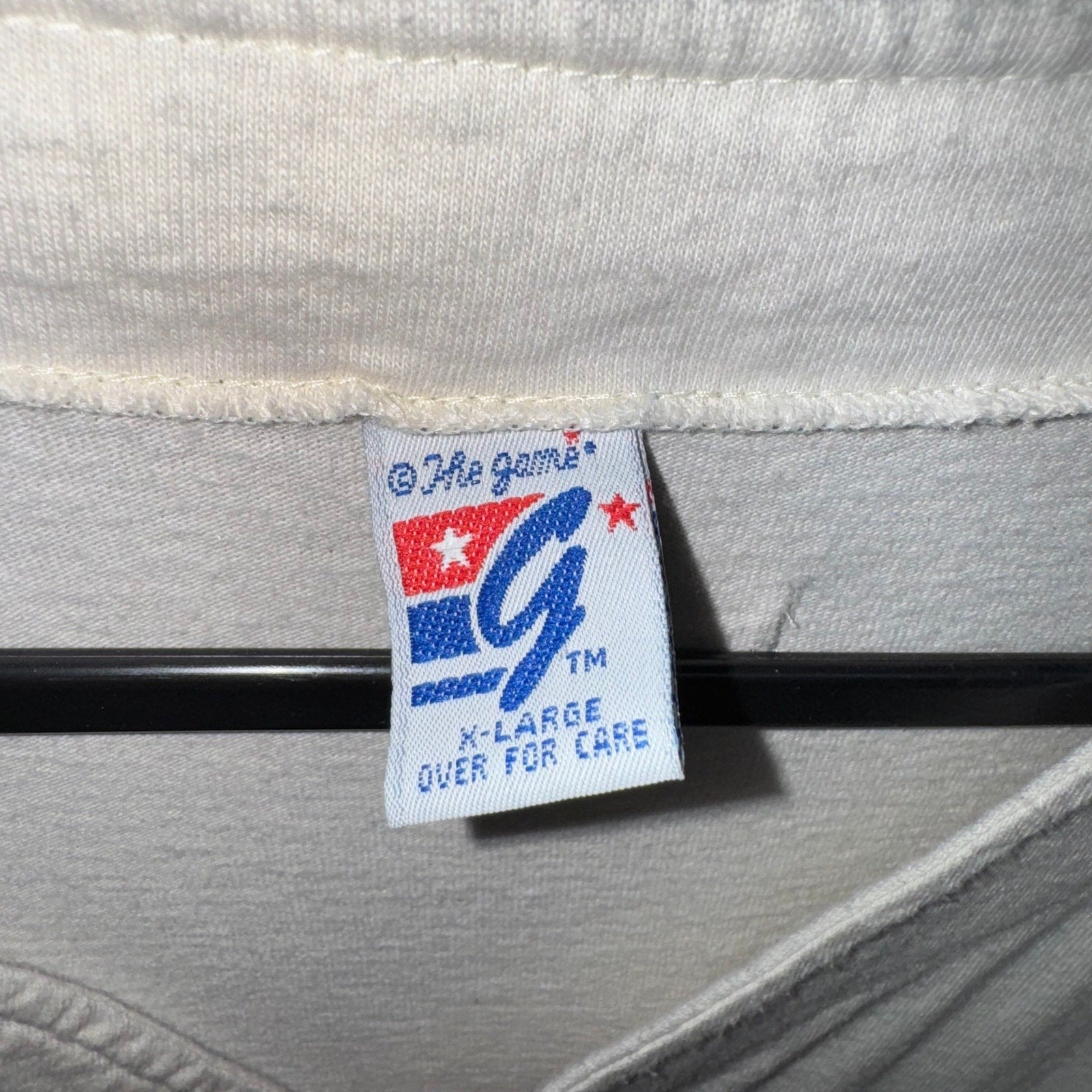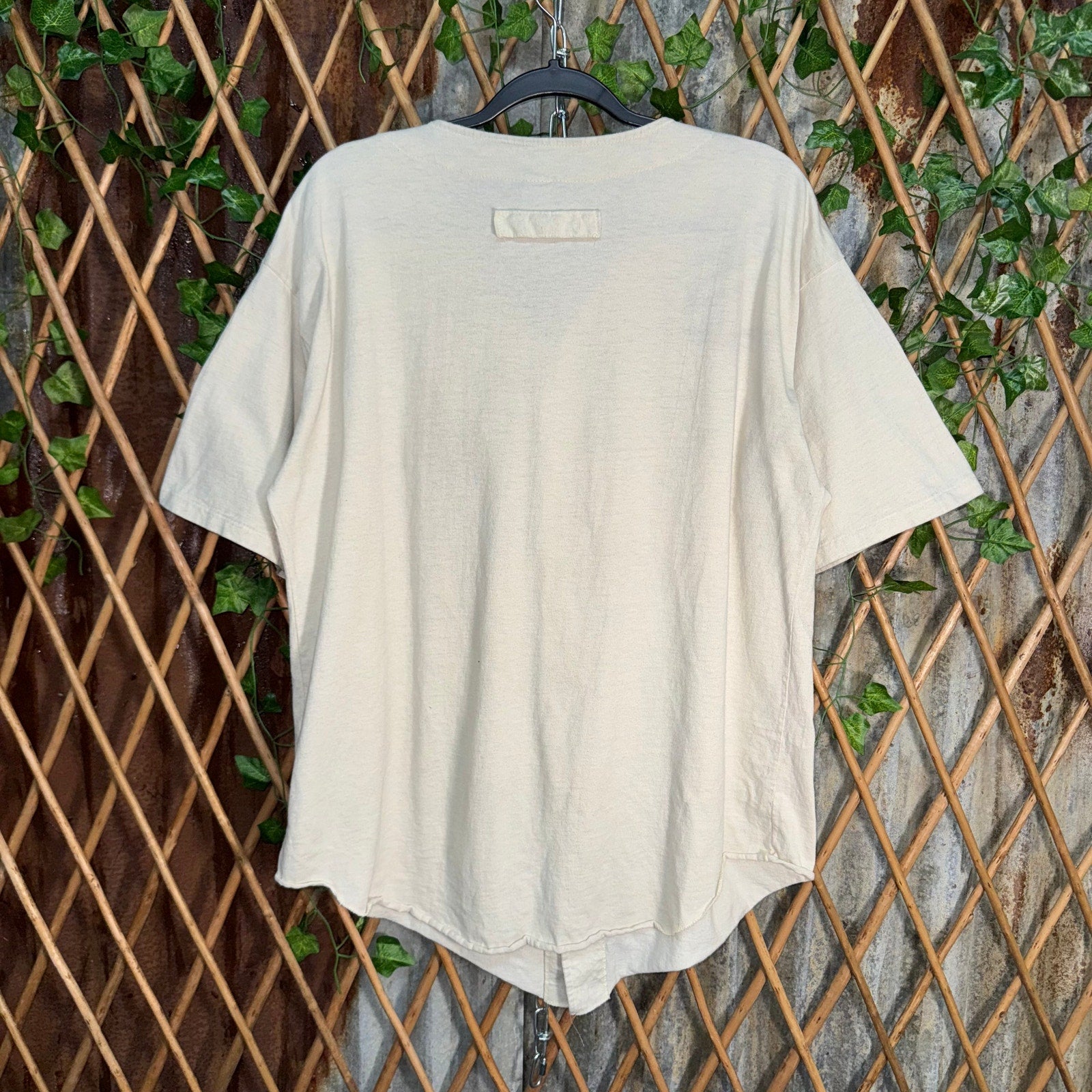 Vintage / Y2K Oakland Athletics embroidered chest hit logo spell out baseball MLB team on the game tag six button up baseball jersey crème de la crème/beige colorway 1990s era sportswear essential