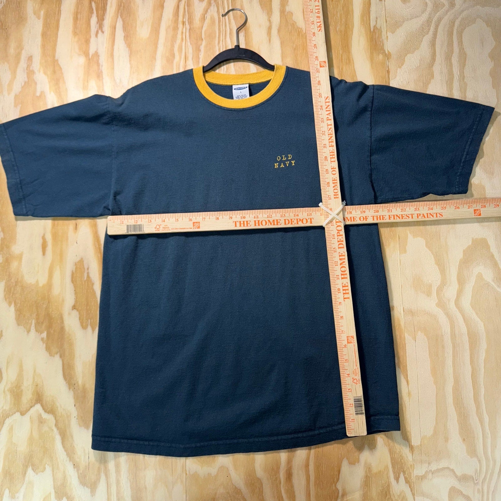 Vintage / Y2K Old Navy spell out small chest hit essential yellow neck blue T-shirt 1990s/2000s era skate/surf style essential TEE