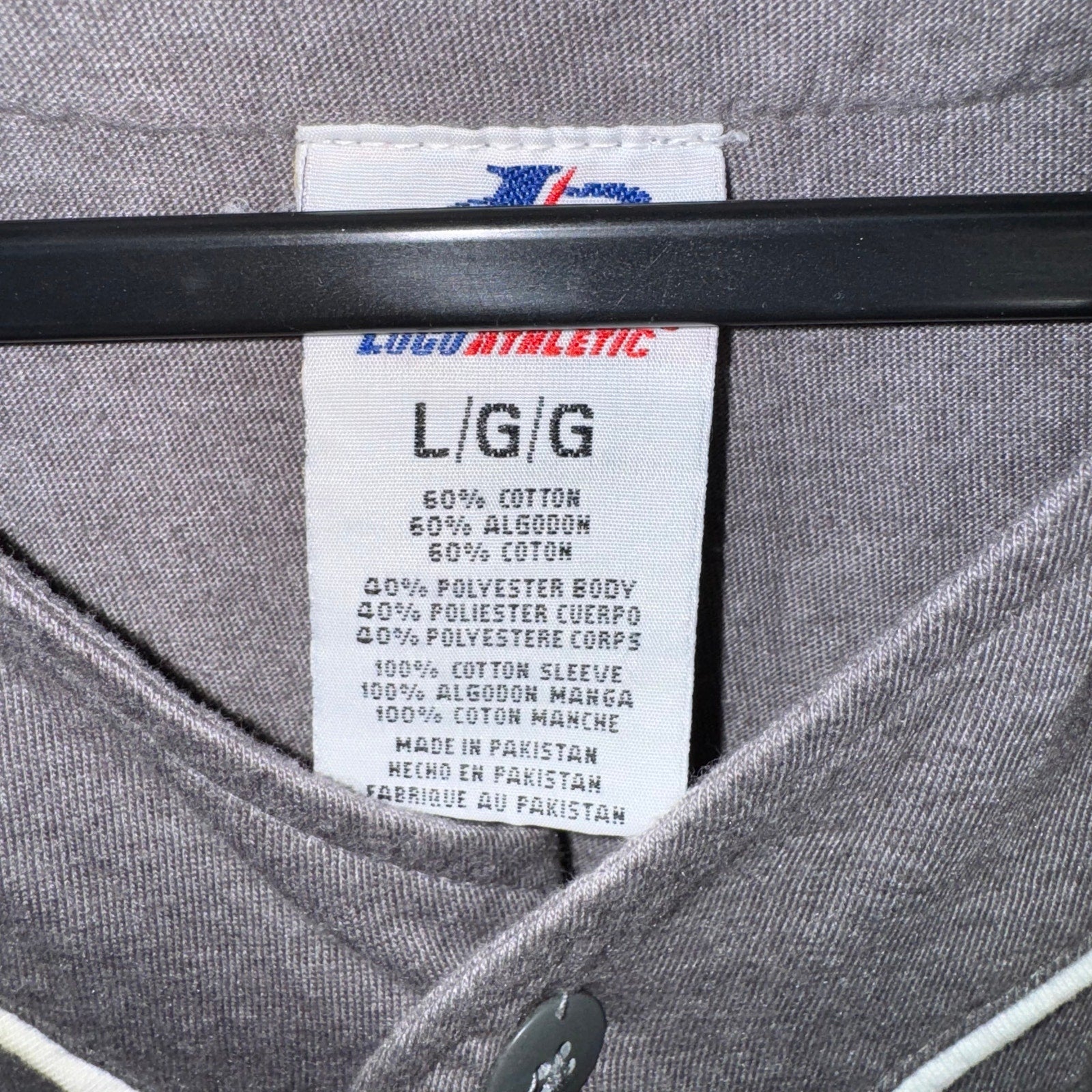 Vintage / Y2K San Francisco Giants, Bay Area SF logo athletic brand baseball jersey T-shirt, six button up two tone, gray body with black sleeves embroidered logo, sportswear essential