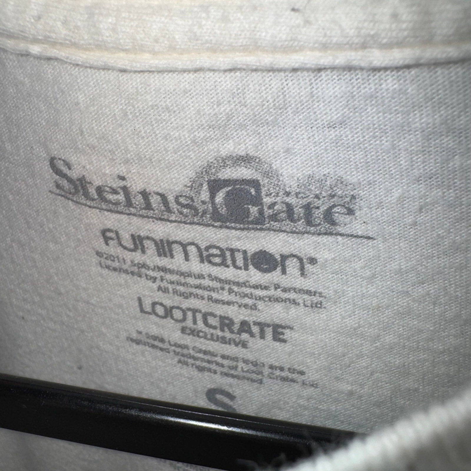 Vintage / Y2K Steinsgate 2000s era Funimation loot crate exclusive animation, cartoon, anime, graphic, off-white, crème de la crème, T-shirt, colorway, essential, rare, licensed indicated