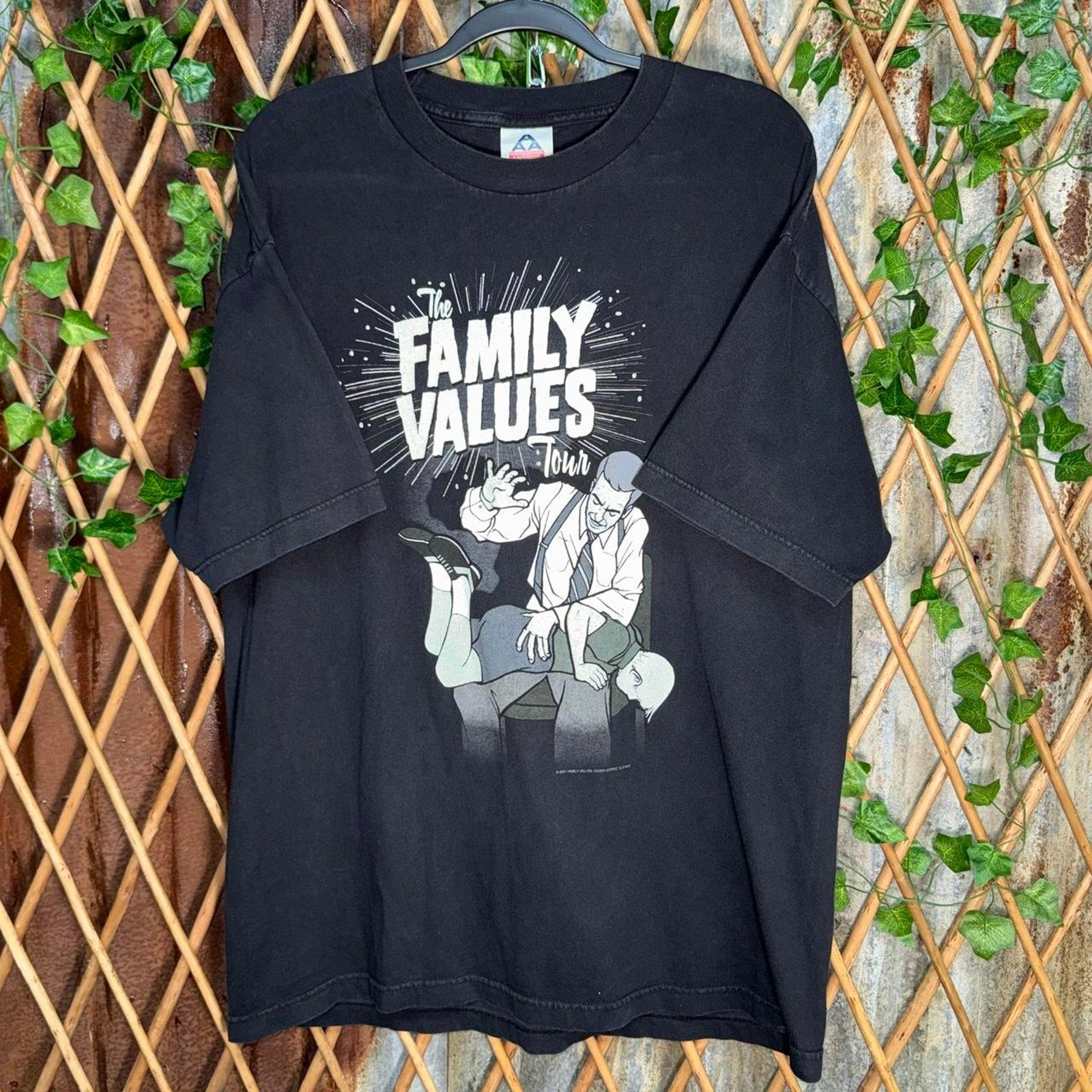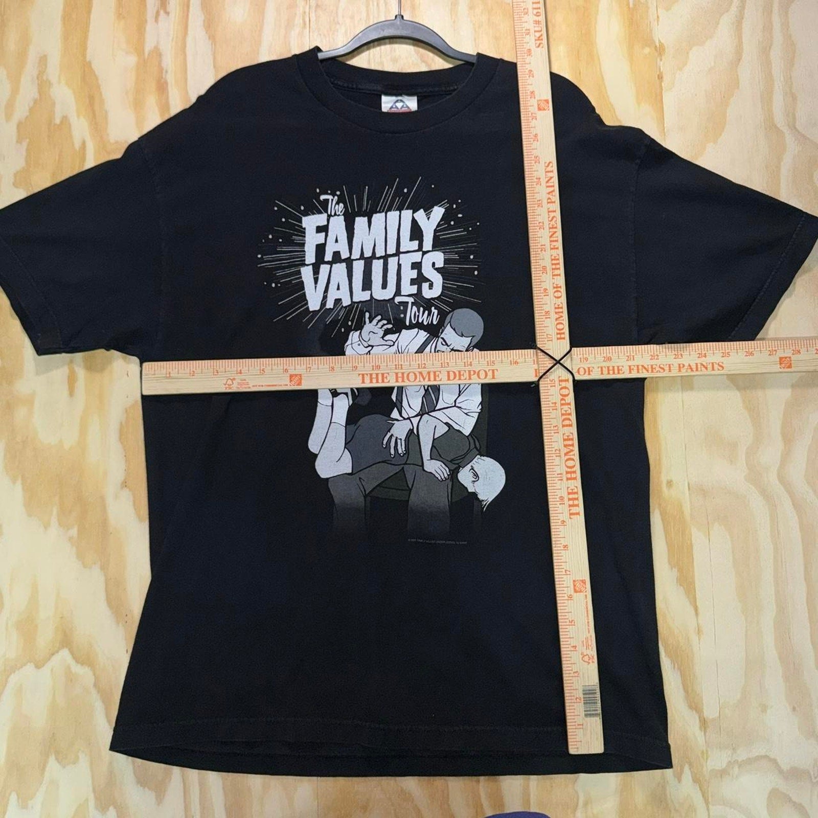 Vintage / Y2K The Family Values Tour 2001 licensed to giant on AAA tag black T-Shirt front & back hit double sided multiple graphic tour dates on back shot sponsored by pony stone temple pilots, linkin park, staind, static x, deadsy acts / performers