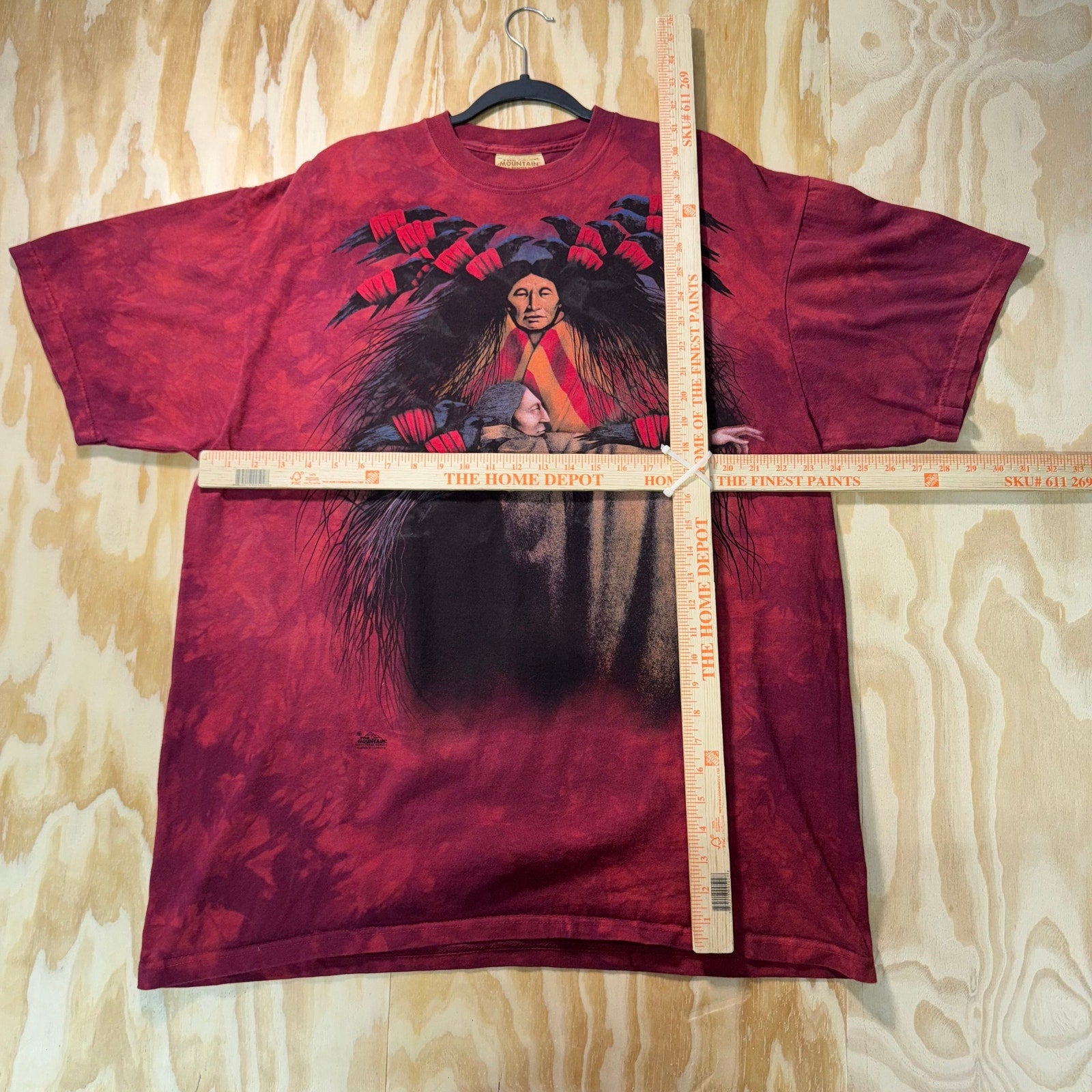 Vintage / Y2K the mountain designed and printed in USA 1990/2000 sarah red tie-dye T-shirt Native American heritage jumbo print six piece super rare