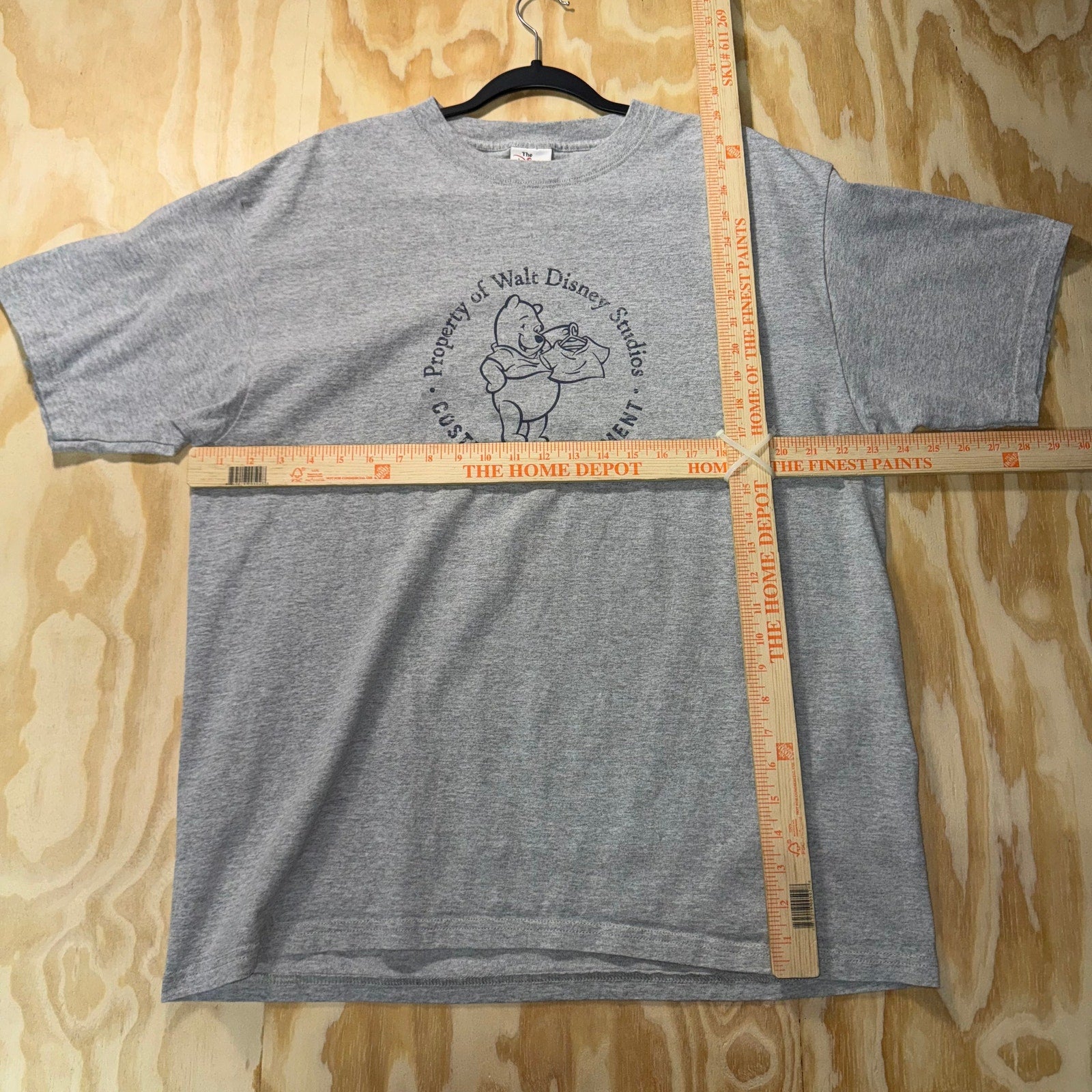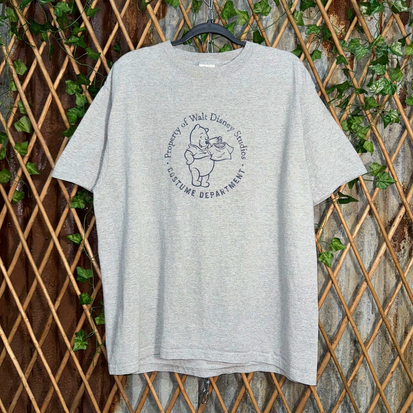 Vintage / Y2K property of Walt Disney Studios costume department, Winnie the Pooh hundred acre forest holding tee heather Gray T-shirt 1990s/2000s era Disneyland theme park amusement park promo essential kid core