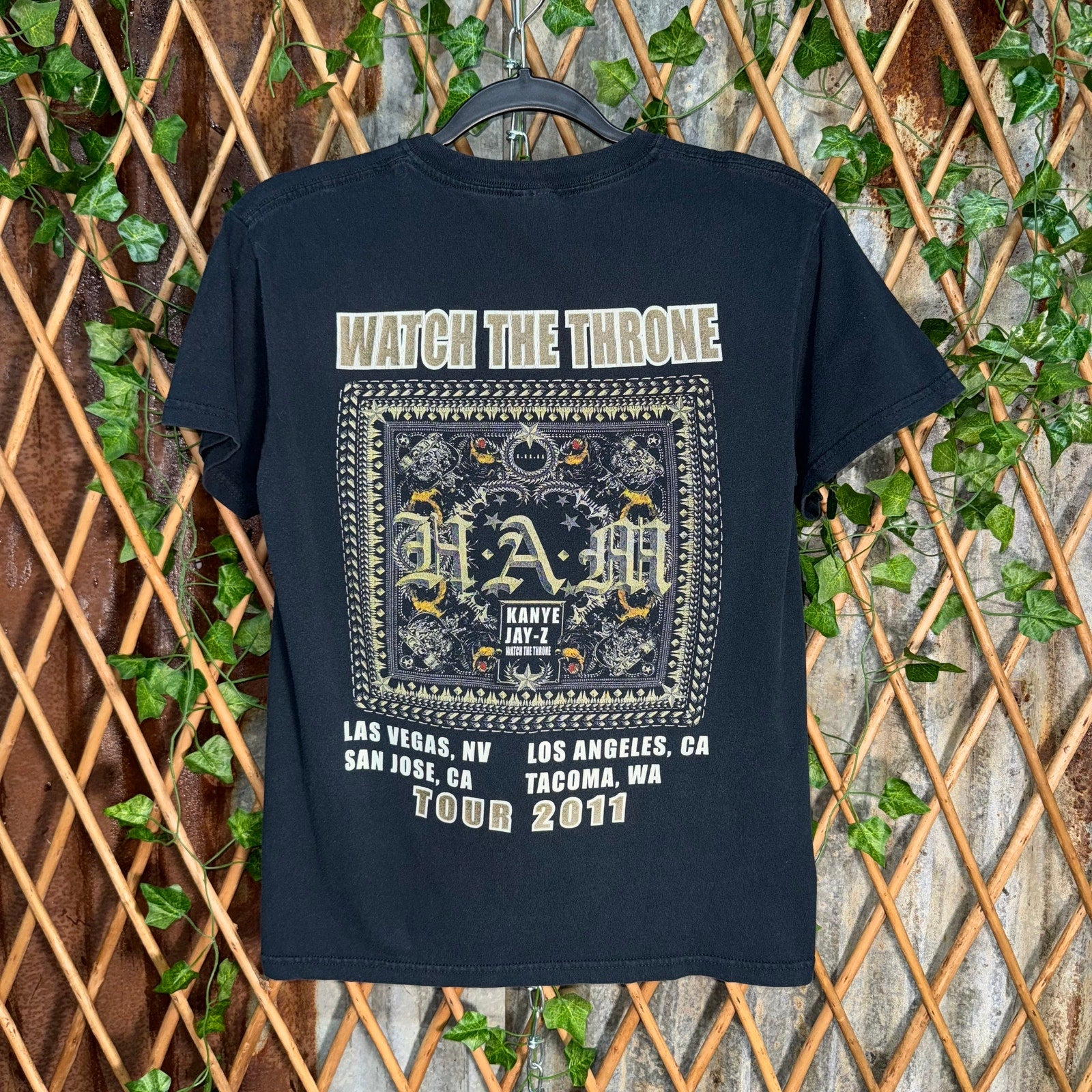 Vintage / Y2K watch the throne Jay-Z and Kanye West black T-shirt on Gilden Tag, Las Vegas, Nevada, San Jose, California, Los Angeles, California, Tacoma, Washington tour 2011 Yeezus the black album hov hova grail T-shirt super rare