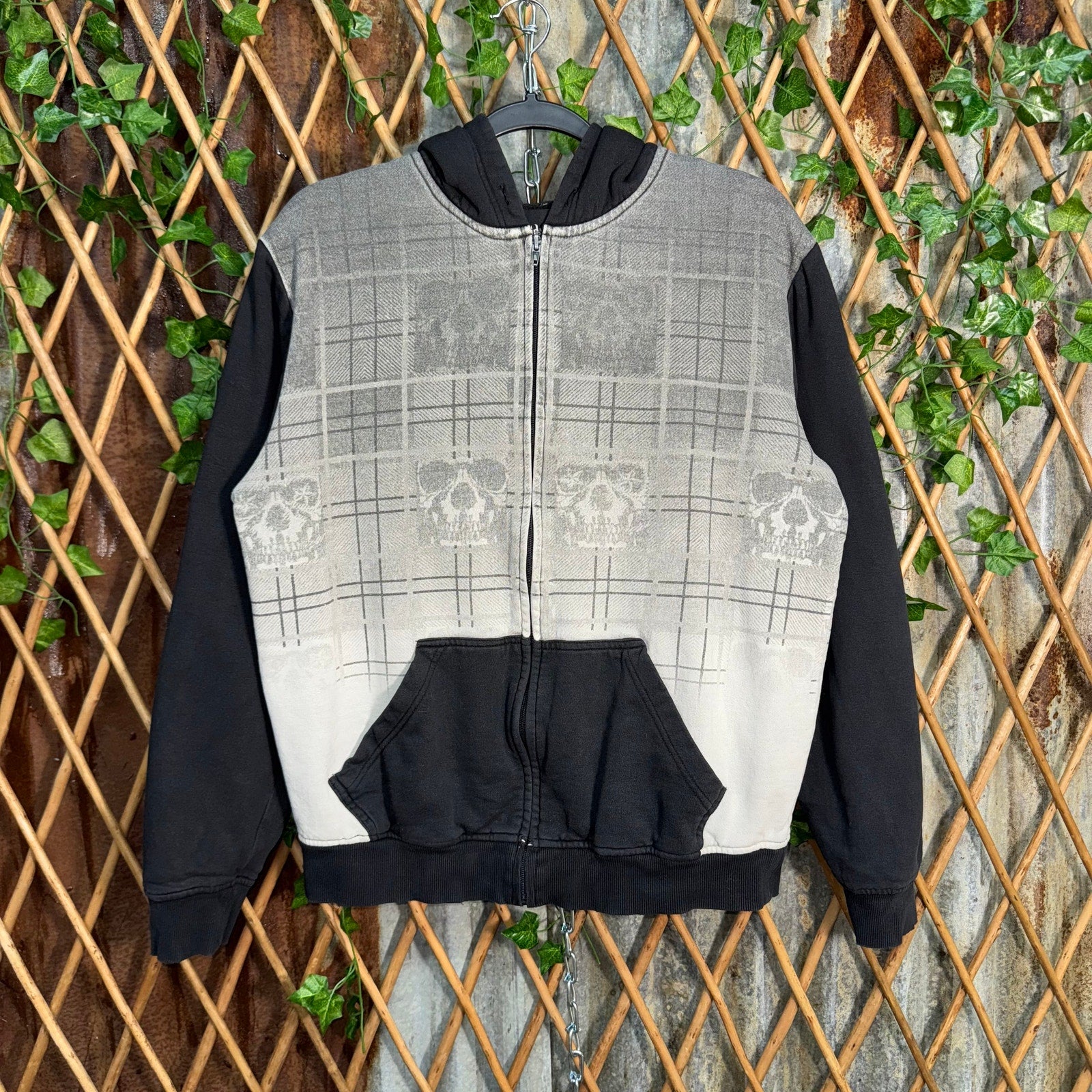 Vintage Y2K hybrid 2000s grunge skull plaid zip up hoodie